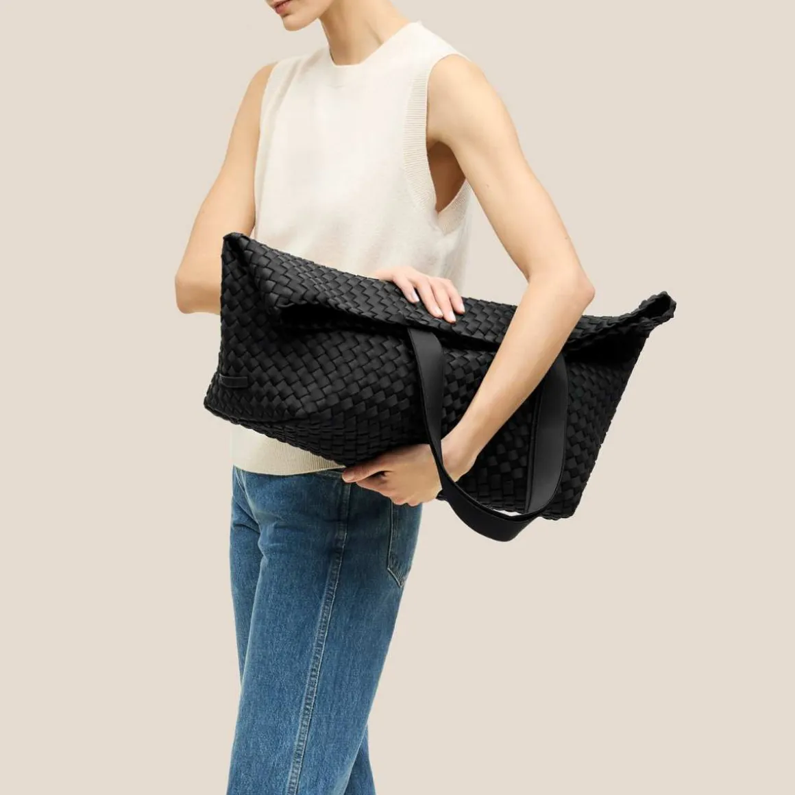 Designet med allsidighet i fokus, er Como Large Tote en del av Naghedi sin første unisex tote-kolleksjon. Vesken er håndvevd i helsort neopren, med en noe grovere vev enn våre ikoniske St. Barths-modeller, og er vår mest romslige tote-veske.