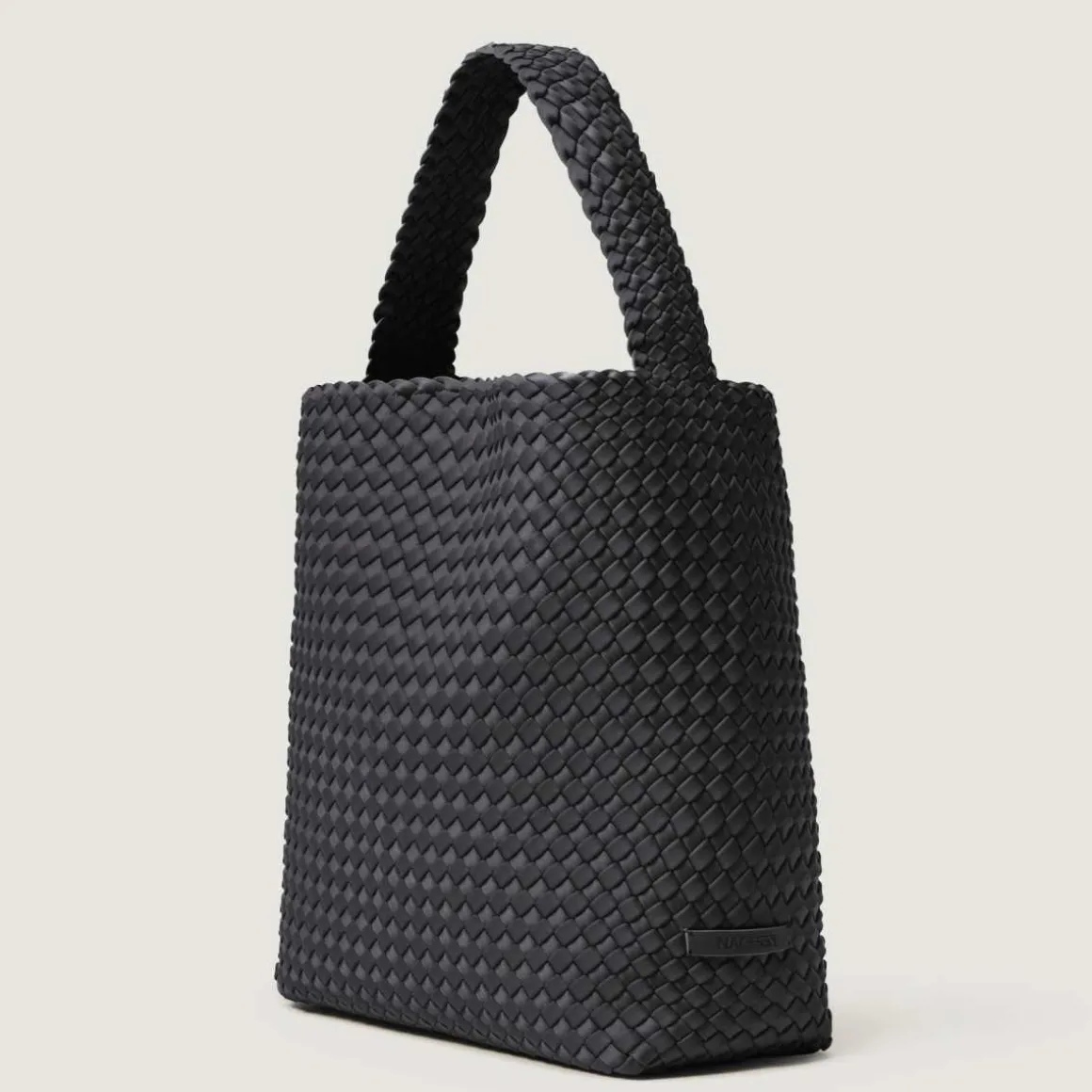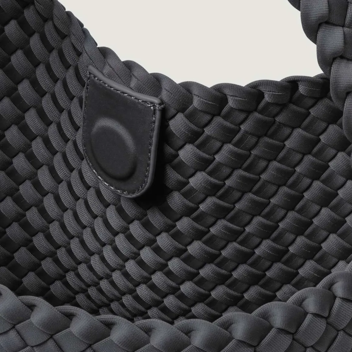 Håndvevd neopren veske fra Naghedi i Ash. Nomad Hobo er romslig og behagelig å ha på seg hele dagen, med en bred stropp som sitter flatt på skulderen.