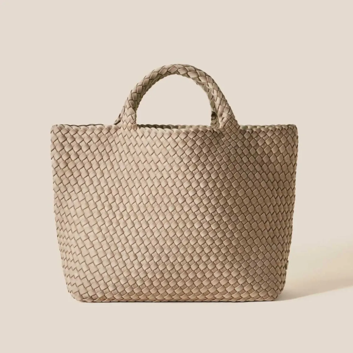 St Barths Tote Bag i medium fra Naghedi. Håndvevd neopren i beige. Barths Medium Tote er en allsidig hverdagsveske for jobb, strand eller reise.