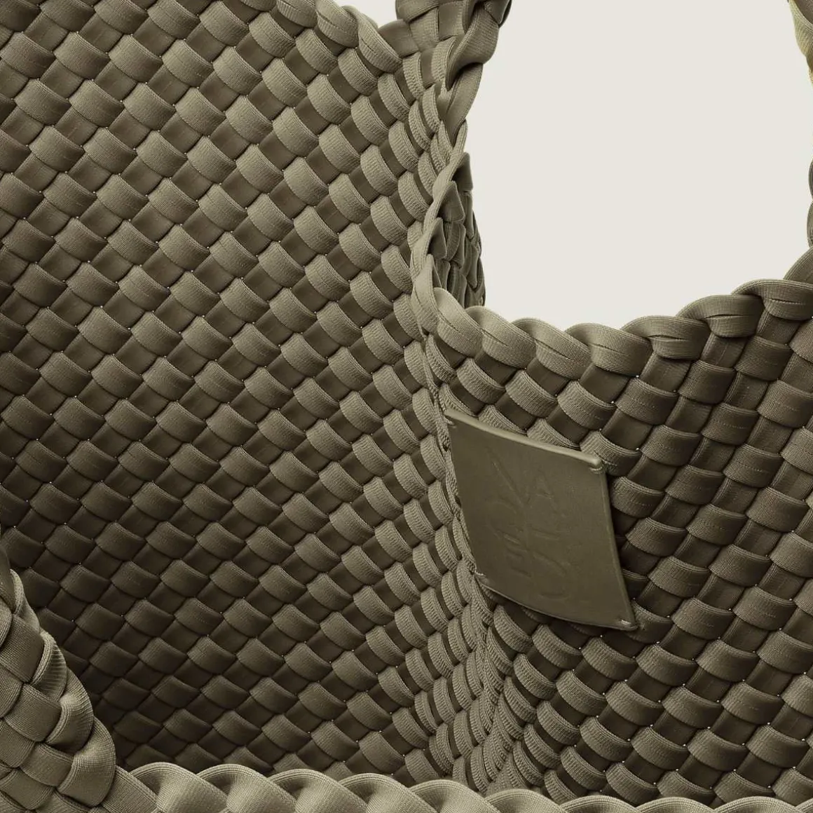 St Barths Tote Bag i medium fra Naghedi. Håndvevd neopren i grønt. Barths Medium Tote er en allsidig hverdagsveske for jobb, strand eller reise.