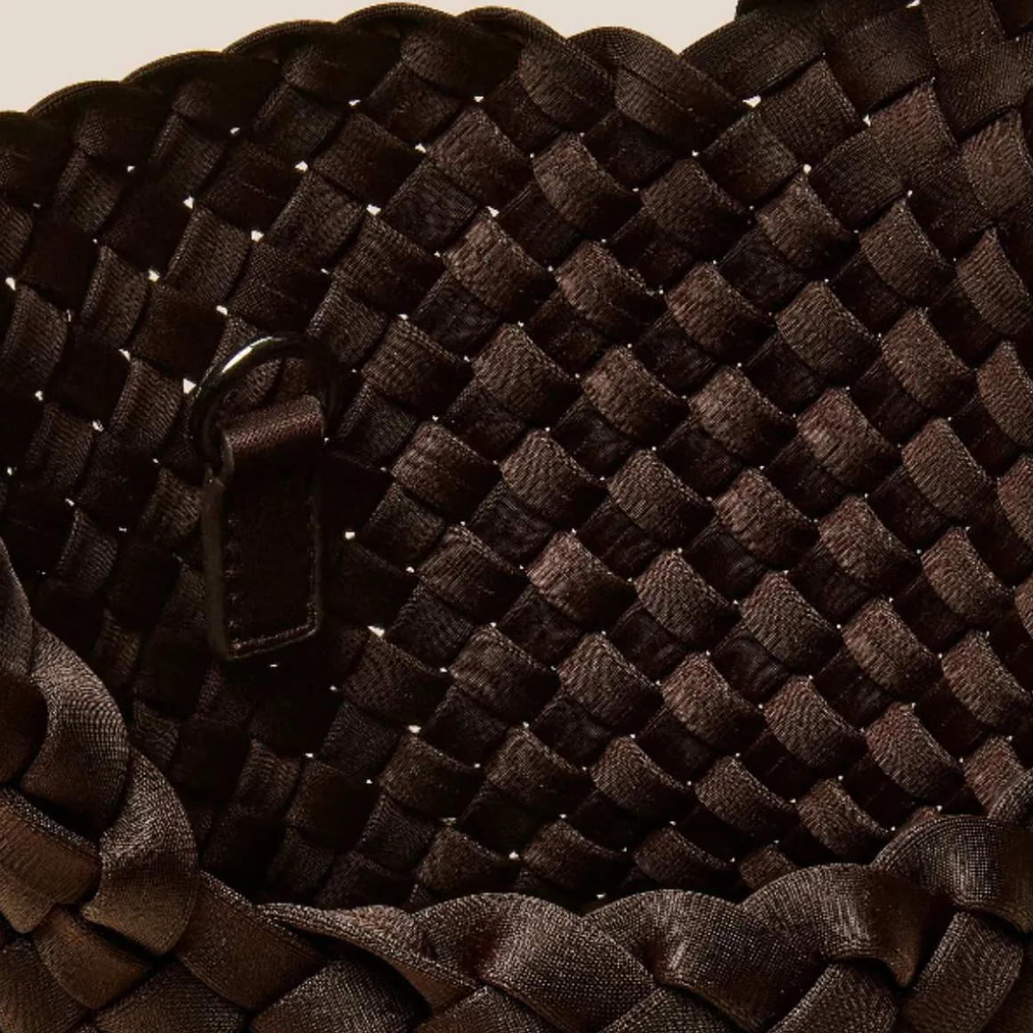 Naghedi St. Barths Petit. Håndvevd neopren i brunt. Barths Petit Tote går sømløst over fra dagtid til kveldstid, og bærer alle de viktigste tingene dine på en komfortabel måte.