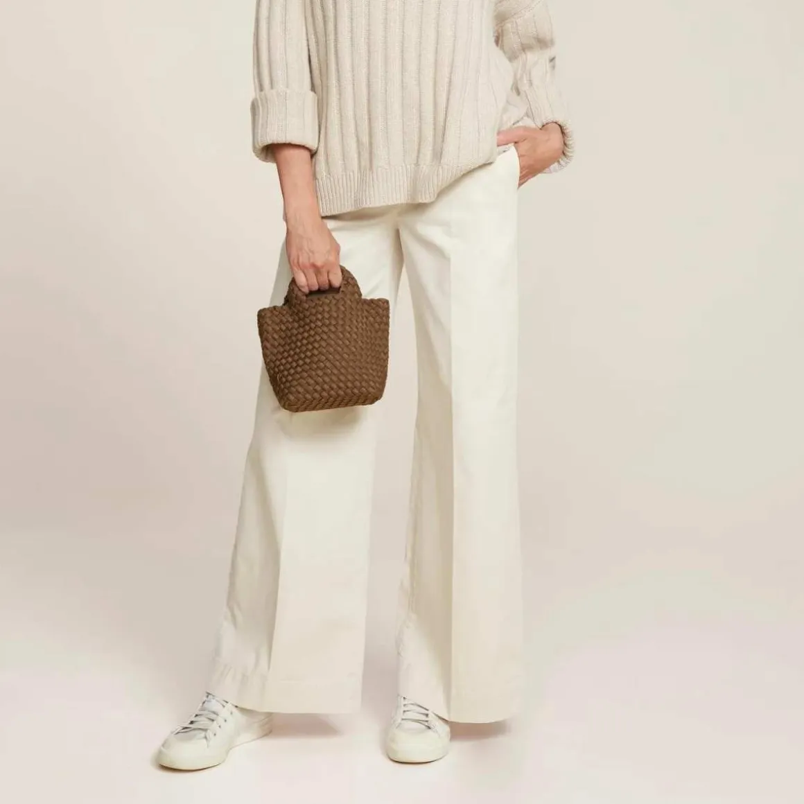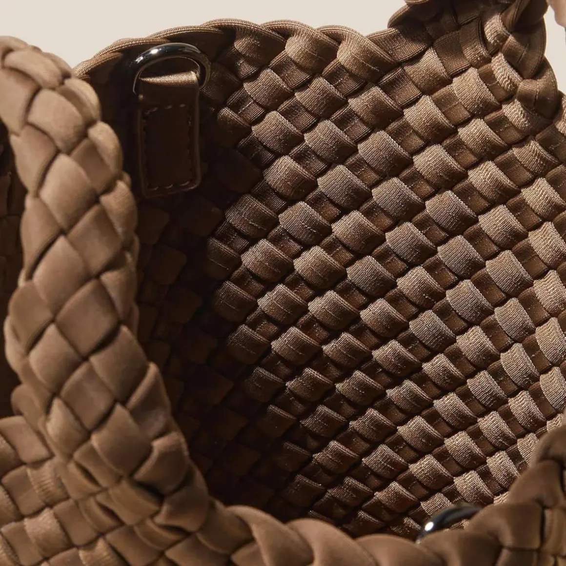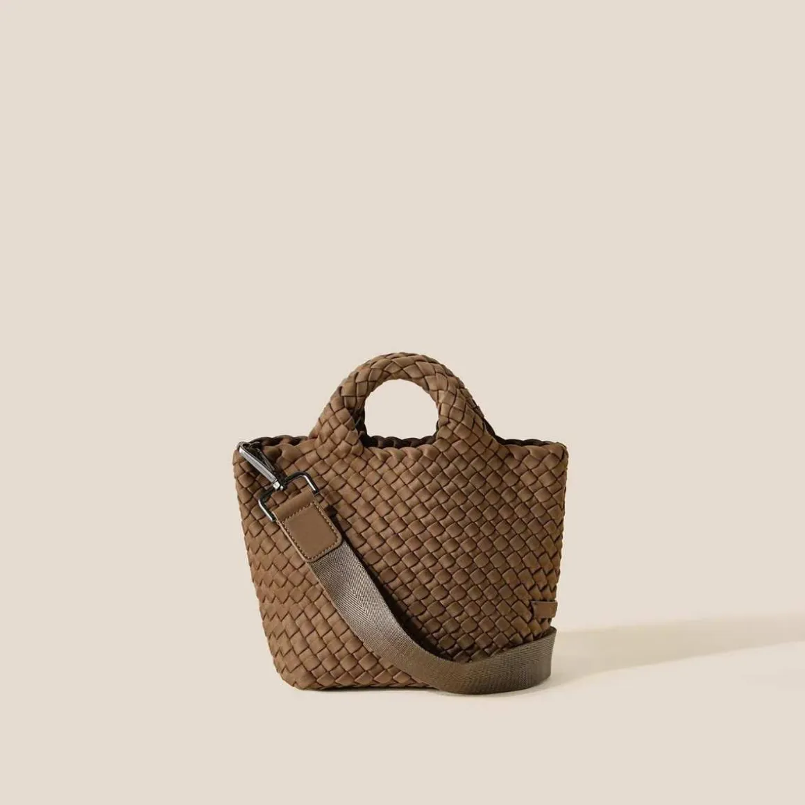 Naghedi St. Barths Petit. Håndvevd neopren i brunt. Barths Petit Tote går sømløst over fra dagtid til kveldstid, og bærer alle de viktigste tingene dine på en komfortabel måte.
