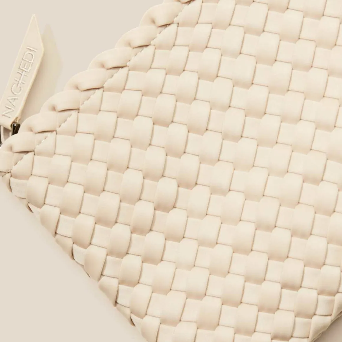 St Barths Tote Bag i small fra Naghedi. Håndvevd neopren i ecru. St. Barths Small Tote er perfekt å ha med seg hele dagen, og er vesken du vil gripe etter hver morgen.