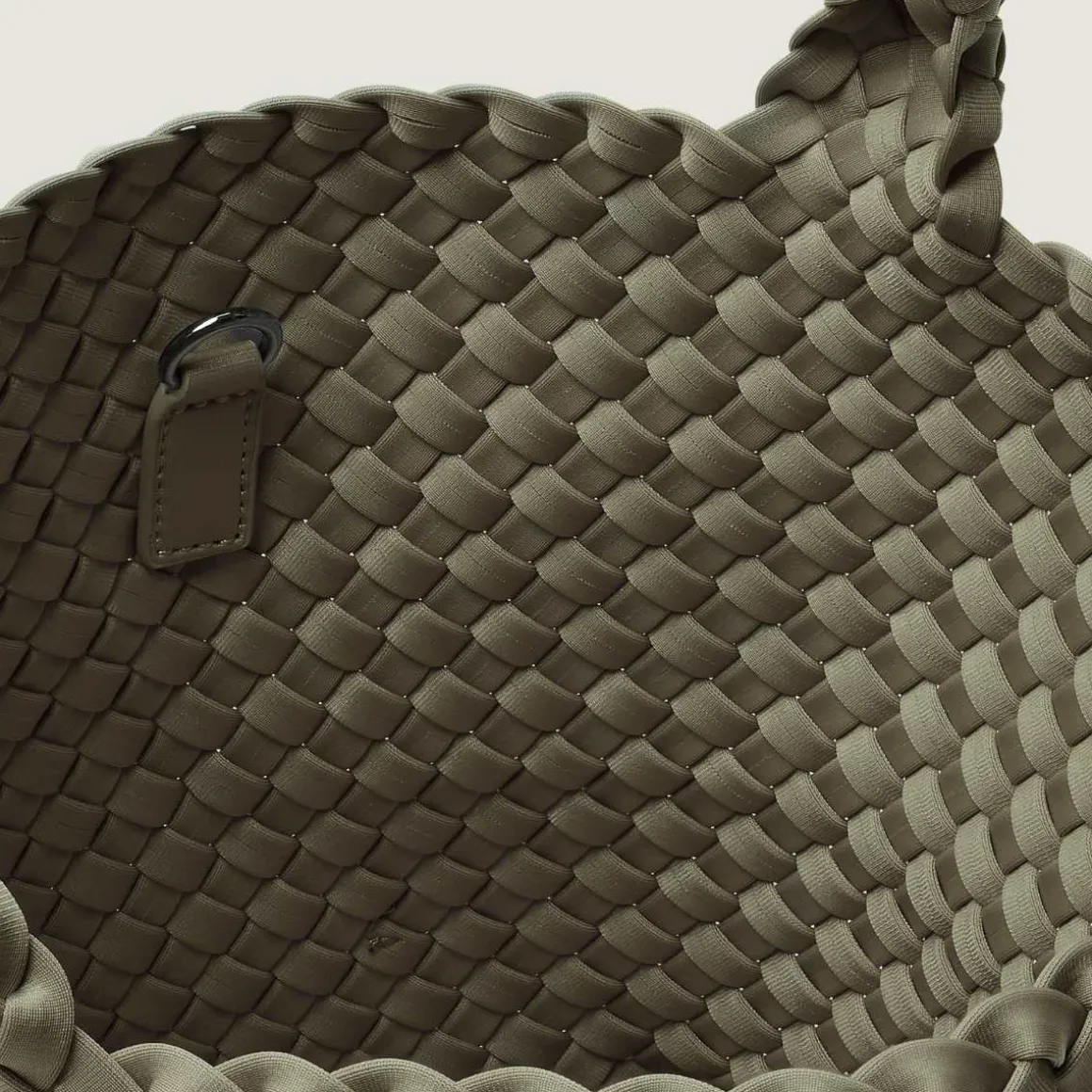 St Barths Tote Bag i small fra Naghedi. Håndvevd neopren i olea. St. Barths Small Tote er perfekt å ha med seg hele dagen, og er vesken du vil gripe etter hver morgen.