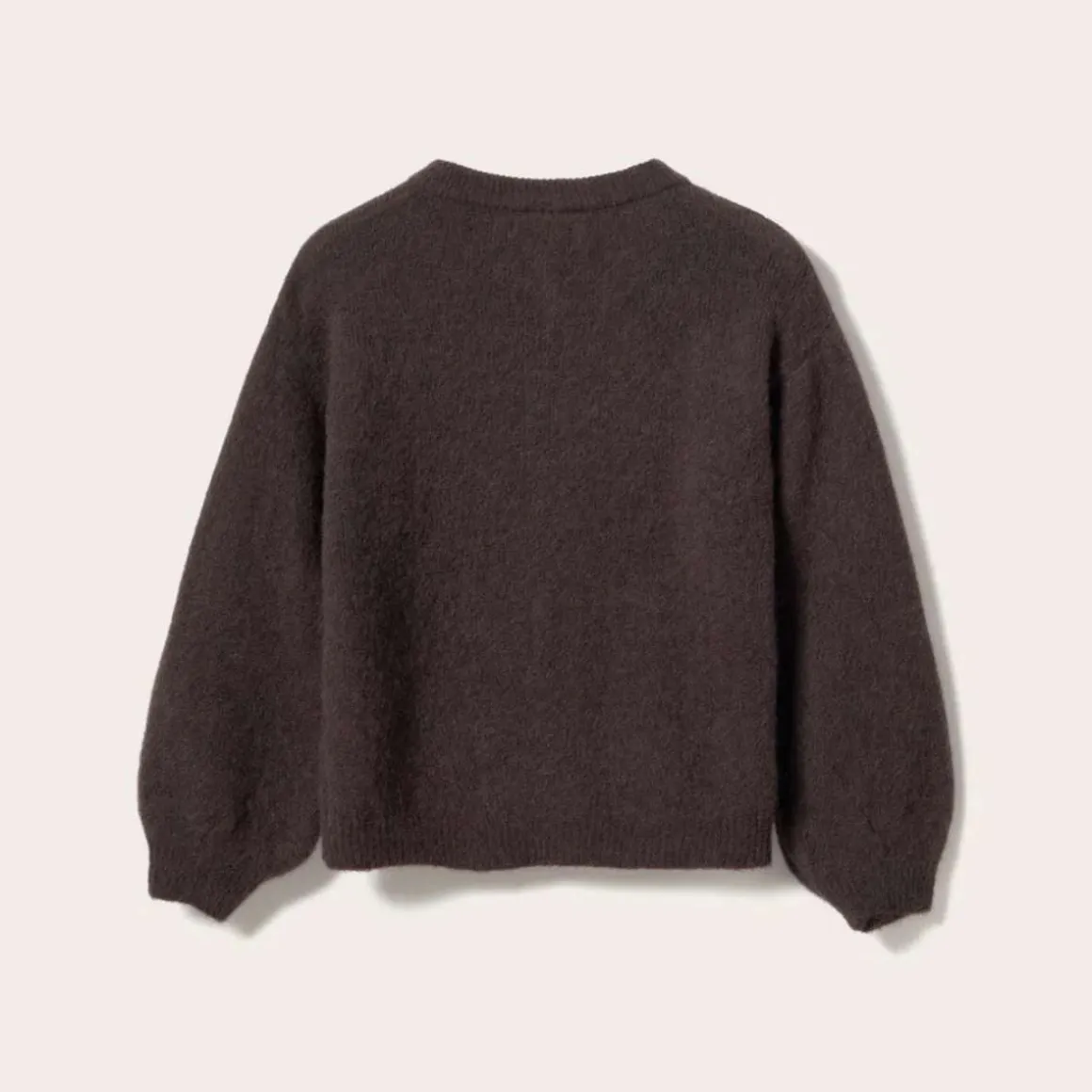 Kae Knit Cardigan fra Noella er laget av en alpakka-blanding. Cardiganen har et lett og luftig uttrykk, noe som gjør den perfekt for både kjølige og varme årstider. Med en klassisk rund hals, knapper foran og voluminøse ermer med delikate hull-detaljer over mansjettene, tilfører den garderoben din et tidløst, men moderne preg.