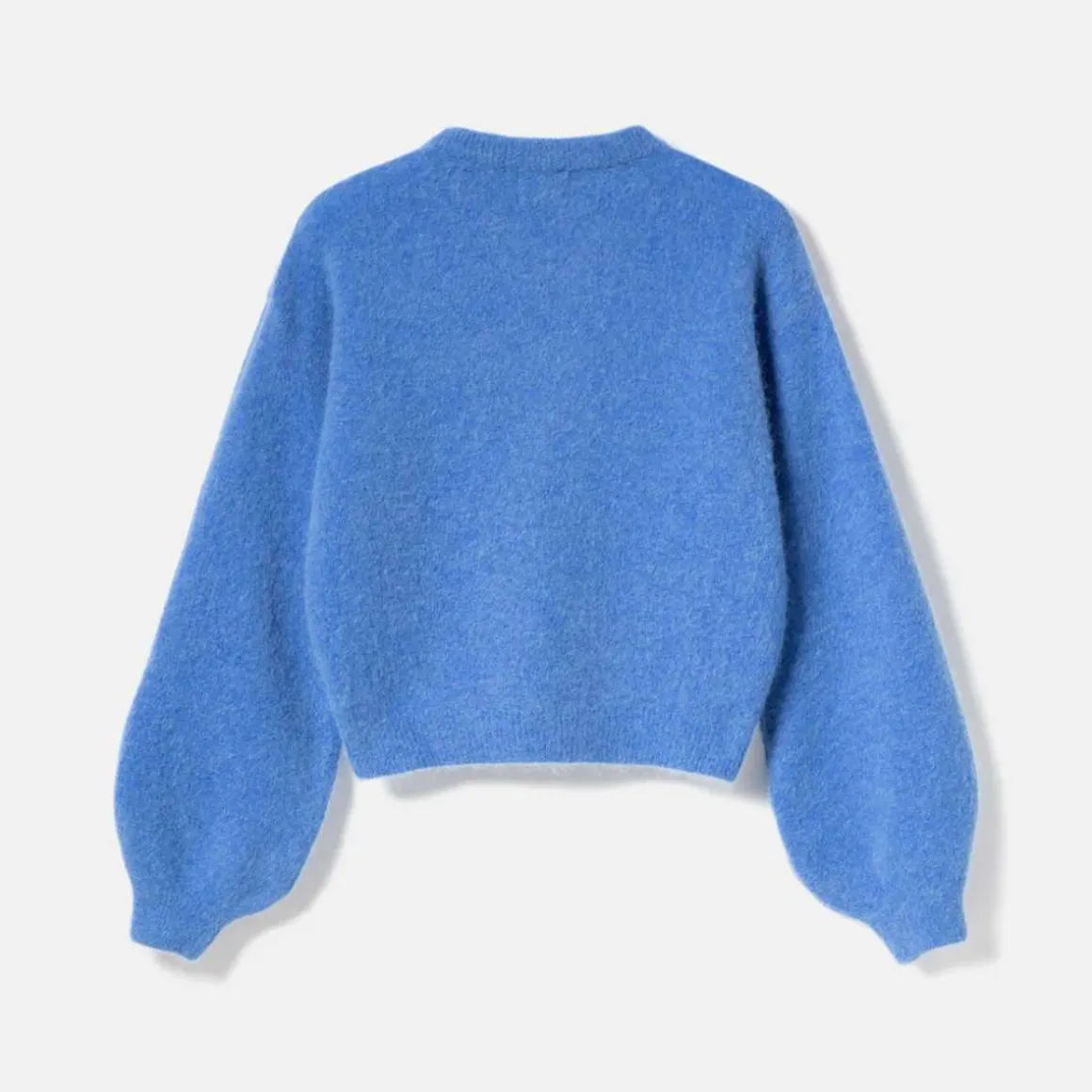 Kae Knit fra Noella er laget av en myk alpakka-blanding. Denne strikken har et lett og luftig uttrykk, noe som gjør den perfekt for både kjølige og varme sesonger. Med en klassisk rund hals og voluminøse ermer med fine hull-detaljer over ermeribb, tilfører den garderoben din et tidløst, men moderne preg. Kae Knit kommer i flere farger.