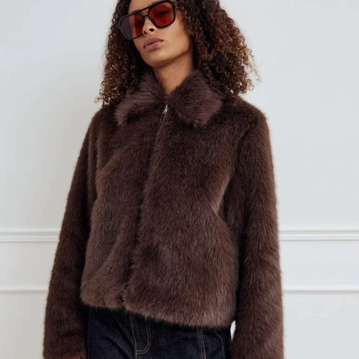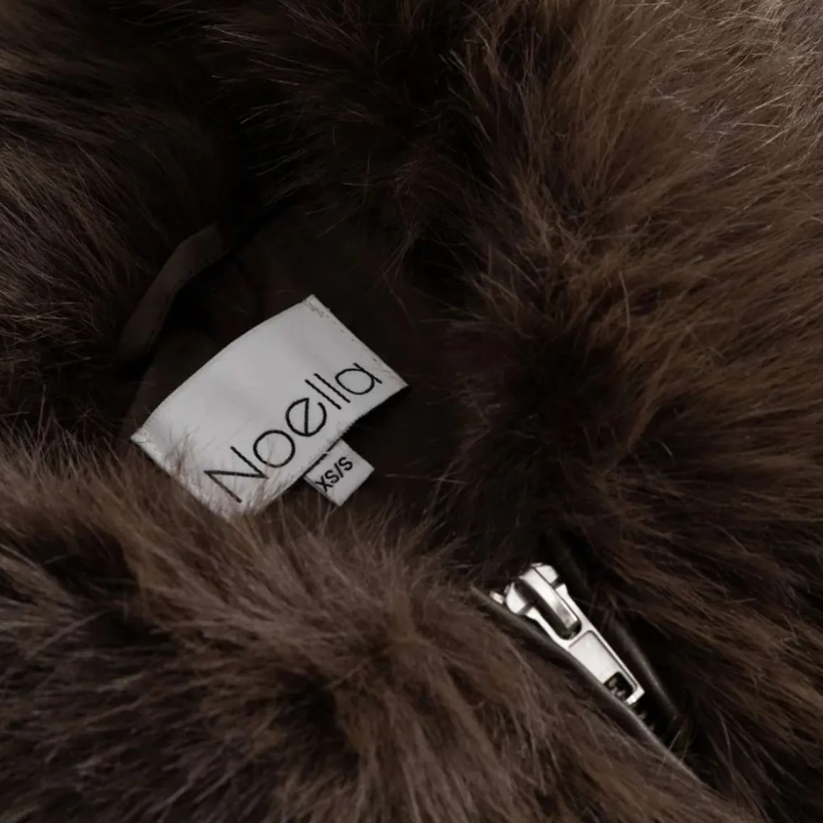 Kort fuskepels med krage og glidelås fra Noella.