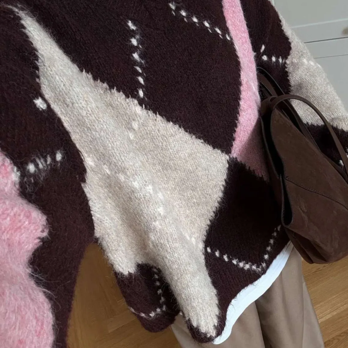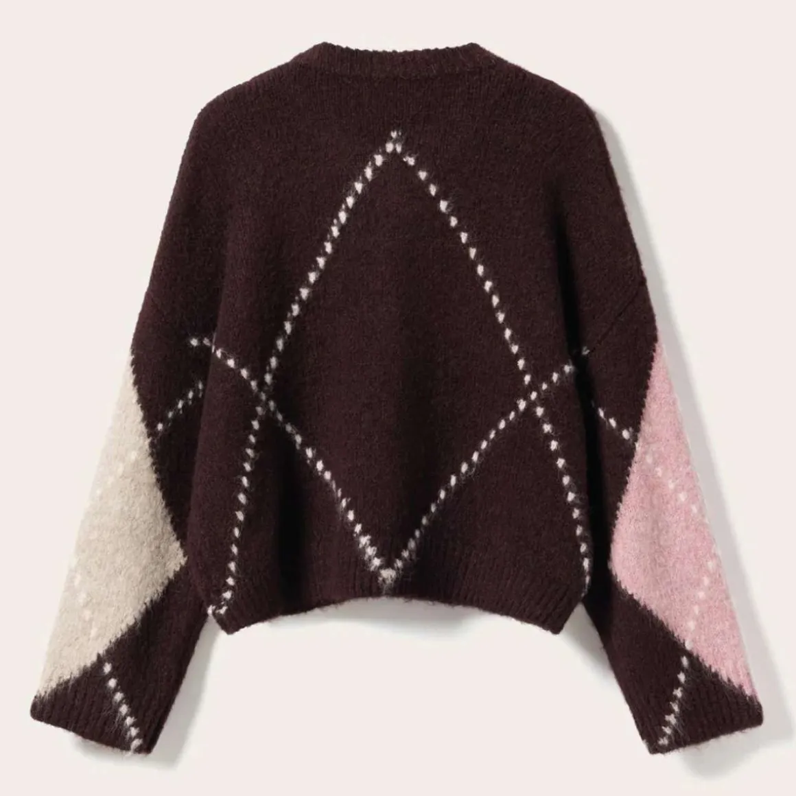 Lai Knit fra Noella er en klassisk strikkegenser med argyle-mønster. Den er designet med V-hals, lange voluminøse ermer og en løs passform som gir et eksklusivt og tidløst uttrykk. Et statement-plagg i garderoben som kan styles med jeans, en pen bukse eller et skjørt.