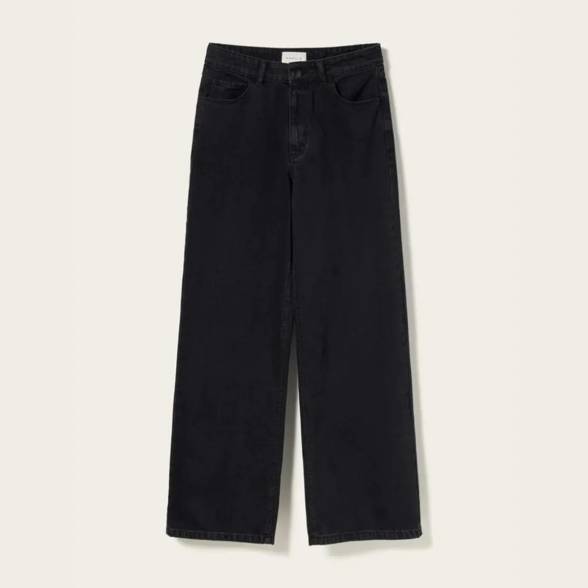 N-Katy Jeans er svartvaskede jeans med vide ben og en ren og moderne fasong.