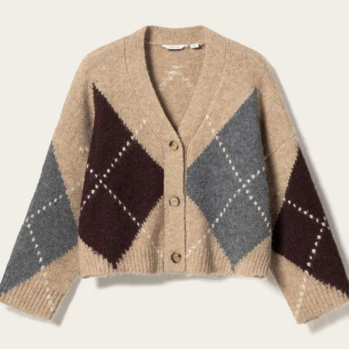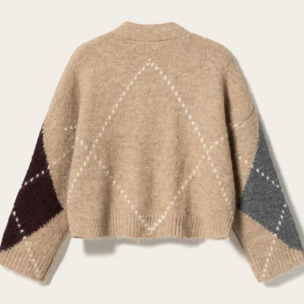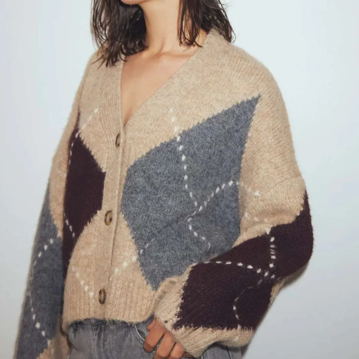 N-Laiana Knit Cardigan er en oversized cardigan med klassisk argyle-mønster. Den har en løs passform, lange voluminøse ermer og en kortere lengde. Argyle-designet gir et tidløst og eksklusivt uttrykk, perfekt for høstens mange trender. Et must-have i garderoben.