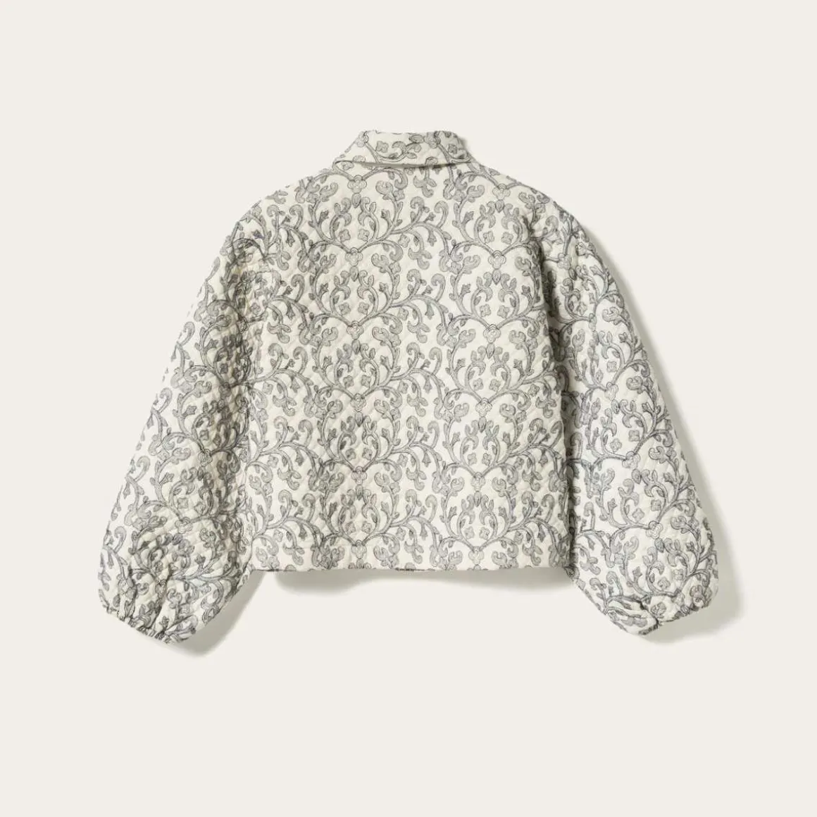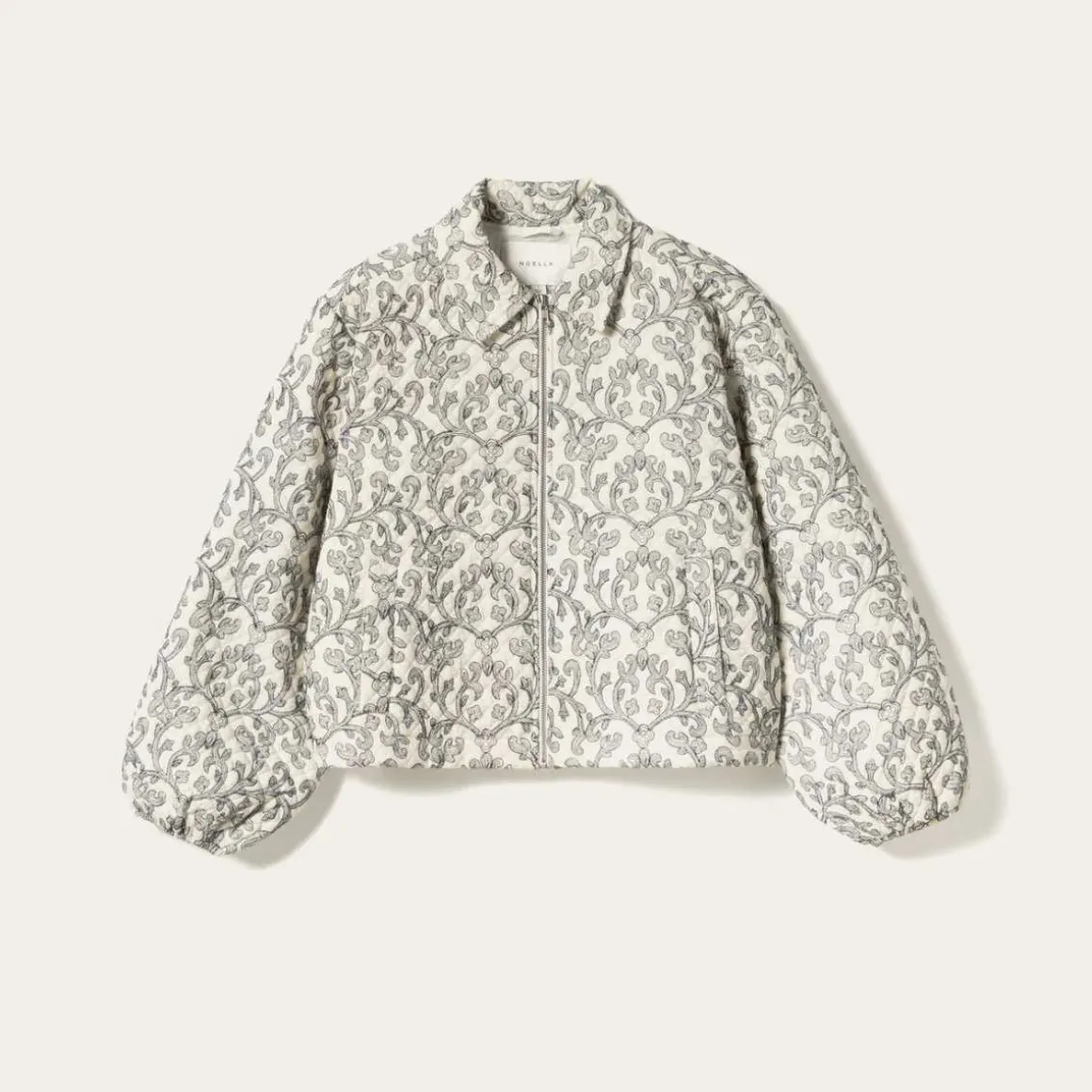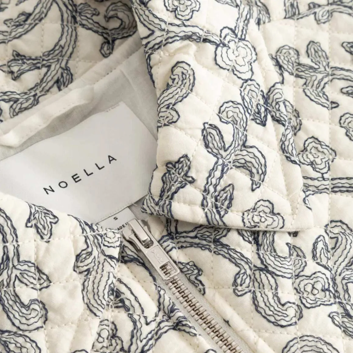 N-Mariam Jacket er en kort, quiltet bomullsjakke med delikat broderi, klassisk krage og glidelåslukking foran.