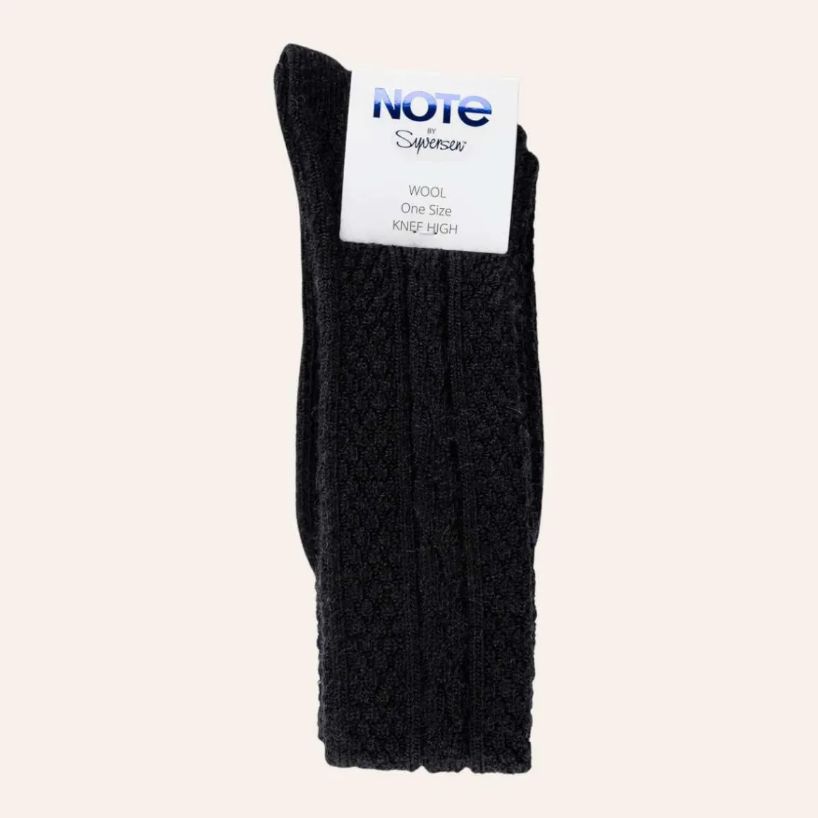 Note Wool Cable Knit Knee High – en vakker knestrømpe i 80 % ull med tidløst flettemønster. Perfekt til både hverdag, tur, og bunad.