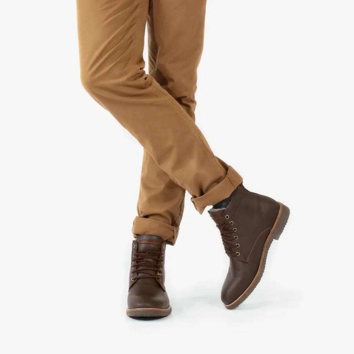 - Ankelboots for herre med snørebånd i vanntett og med et fôr på 100% naturlig pels.
