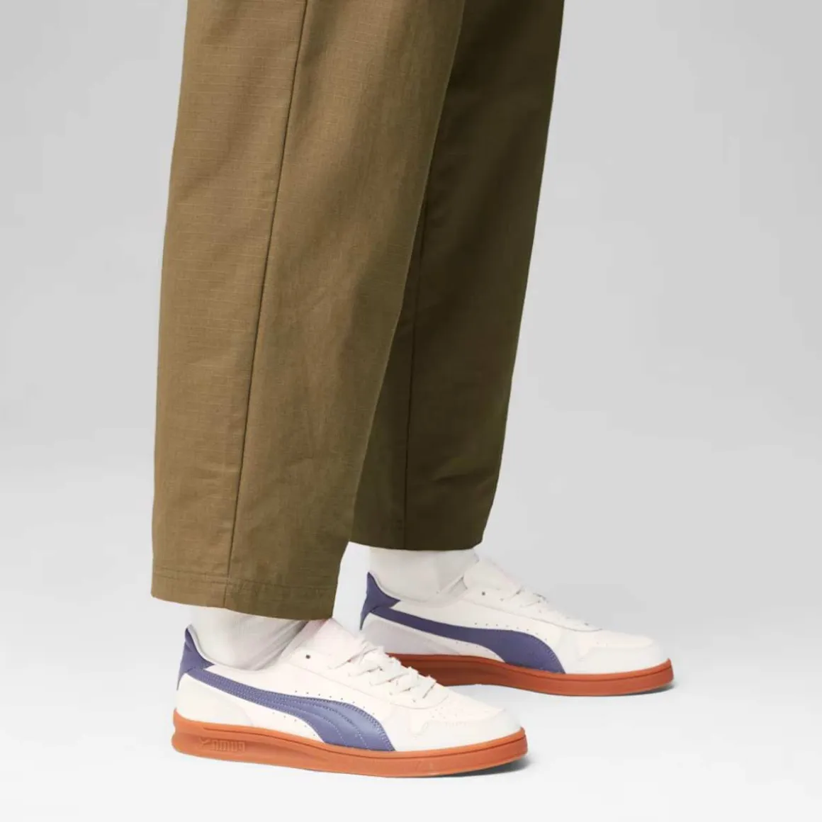 PUMA Indoor kom fra arkivet på midten av 80-tallet og var en universell innendørs treningssko som passet til en rekke ulike idretter. Med sin solide, buede mellomsåle, robuste overdel i skinn og det gode håndverket i tå- og hælkappene, var skoen tiltalende for idrettsutøvere den gang og for hverdagsbrukere i dag. Denne versjonen kommer med et førsteklasses skinnmateriale på undersiden og nubuck-overlegg.