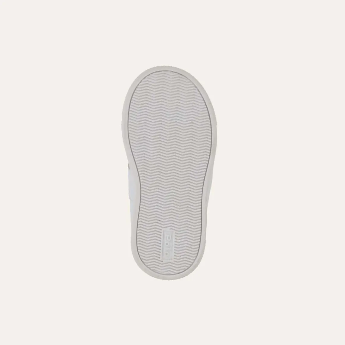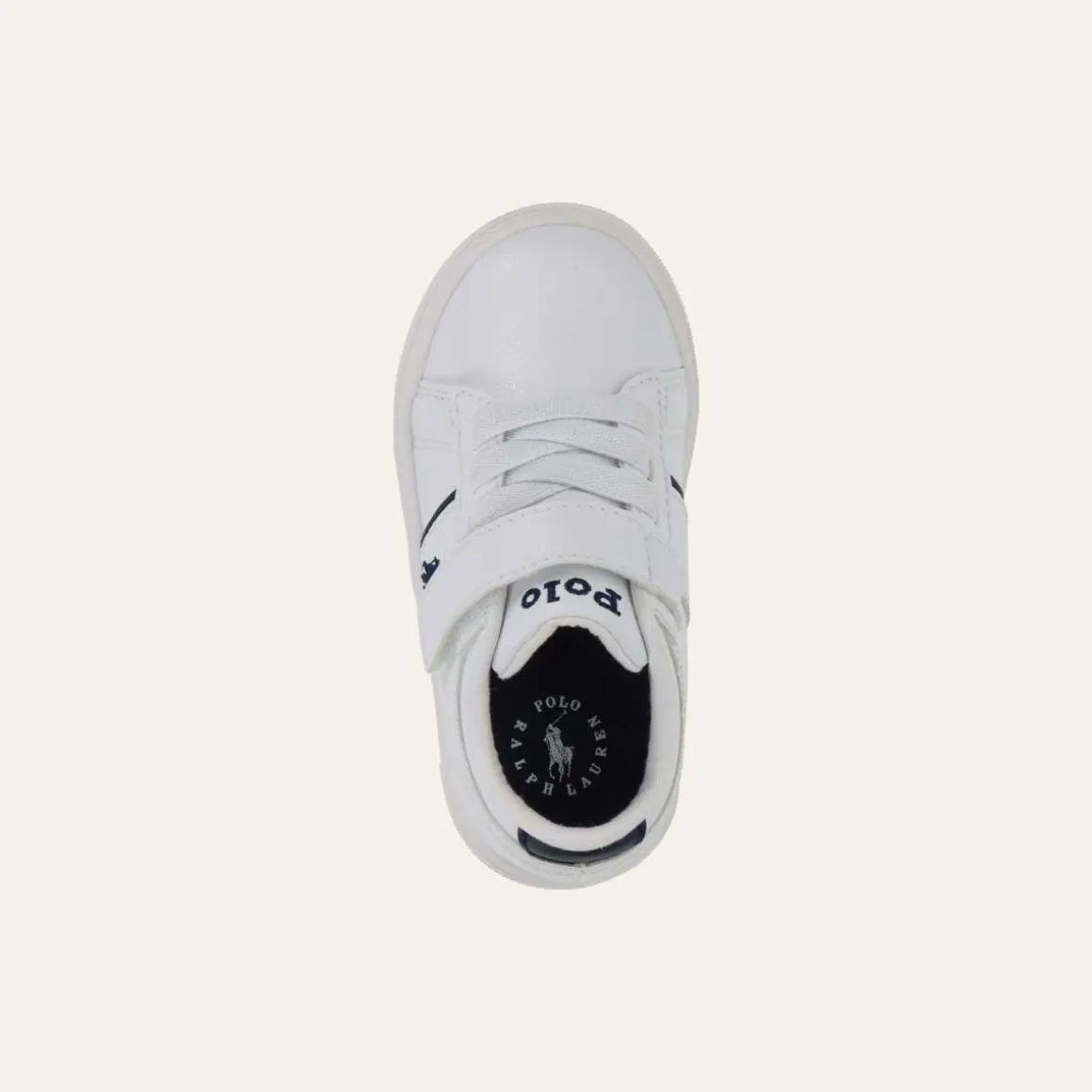 Disse stilrene og komfortable Ralph Lauren Fraizer sneakersene er et perfekt valg for små, aktive føtter. Designet i et klassisk hvitt og marineblått fargevalg, kombinerer de tidløs eleganse med praktisk funksjonalitet.