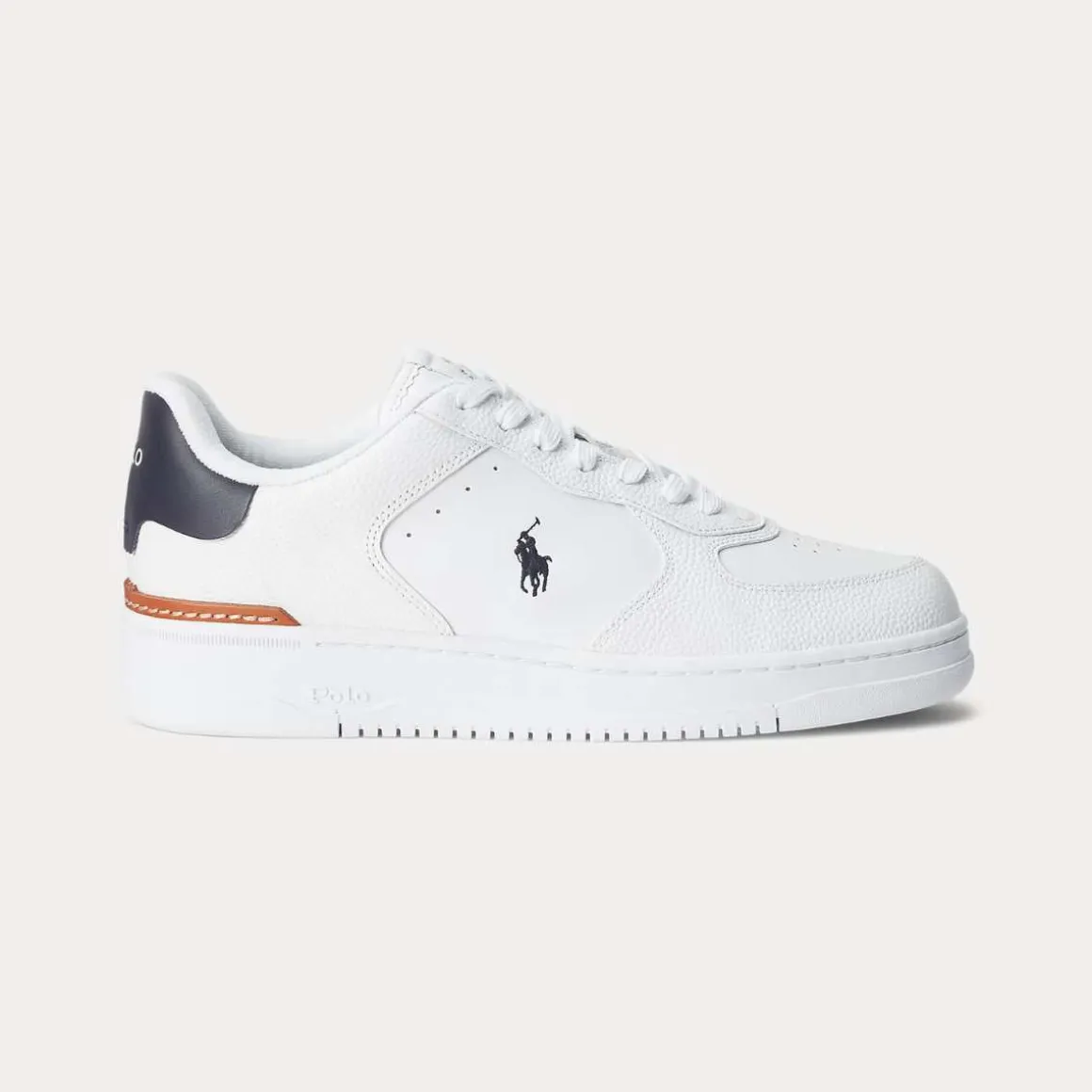 Masters Court hever Polos klassiske lavtopp-trener, og legger til en hælklips i skinn, en EVA-mellomsåle og en solid såle. Skinnoverdelen kombinerer streetwear-designelementer som en perforert vamp med retro-inspirerte logo-aksenter.