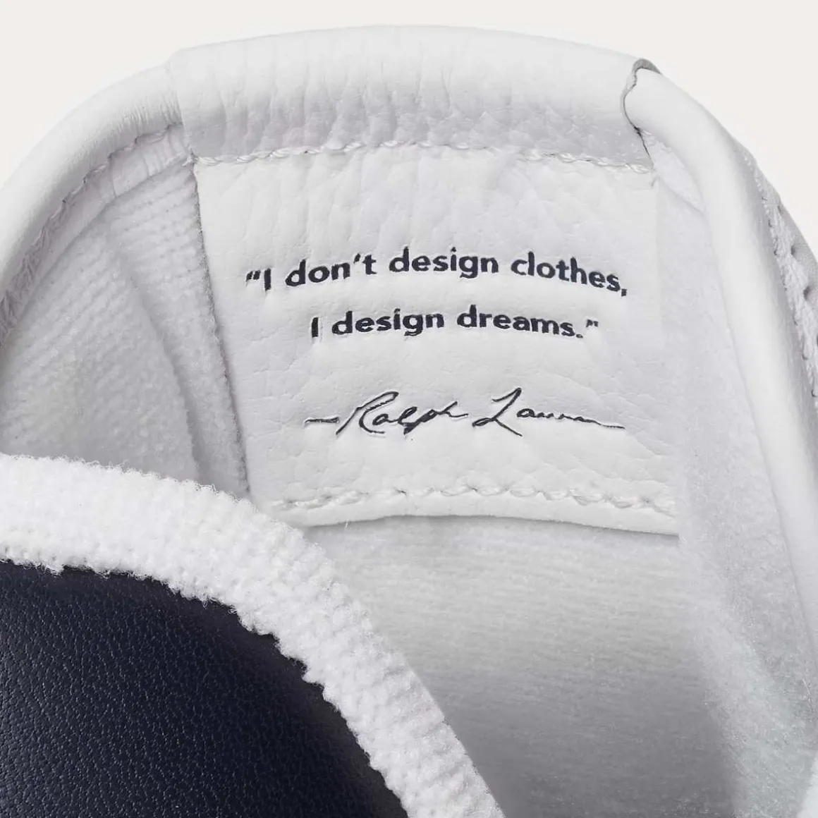 - Signaturponni på utsiden. «Polo Ralph Lauren»-preget skinnlapp på pløsen. «Polo» preget på hælen.