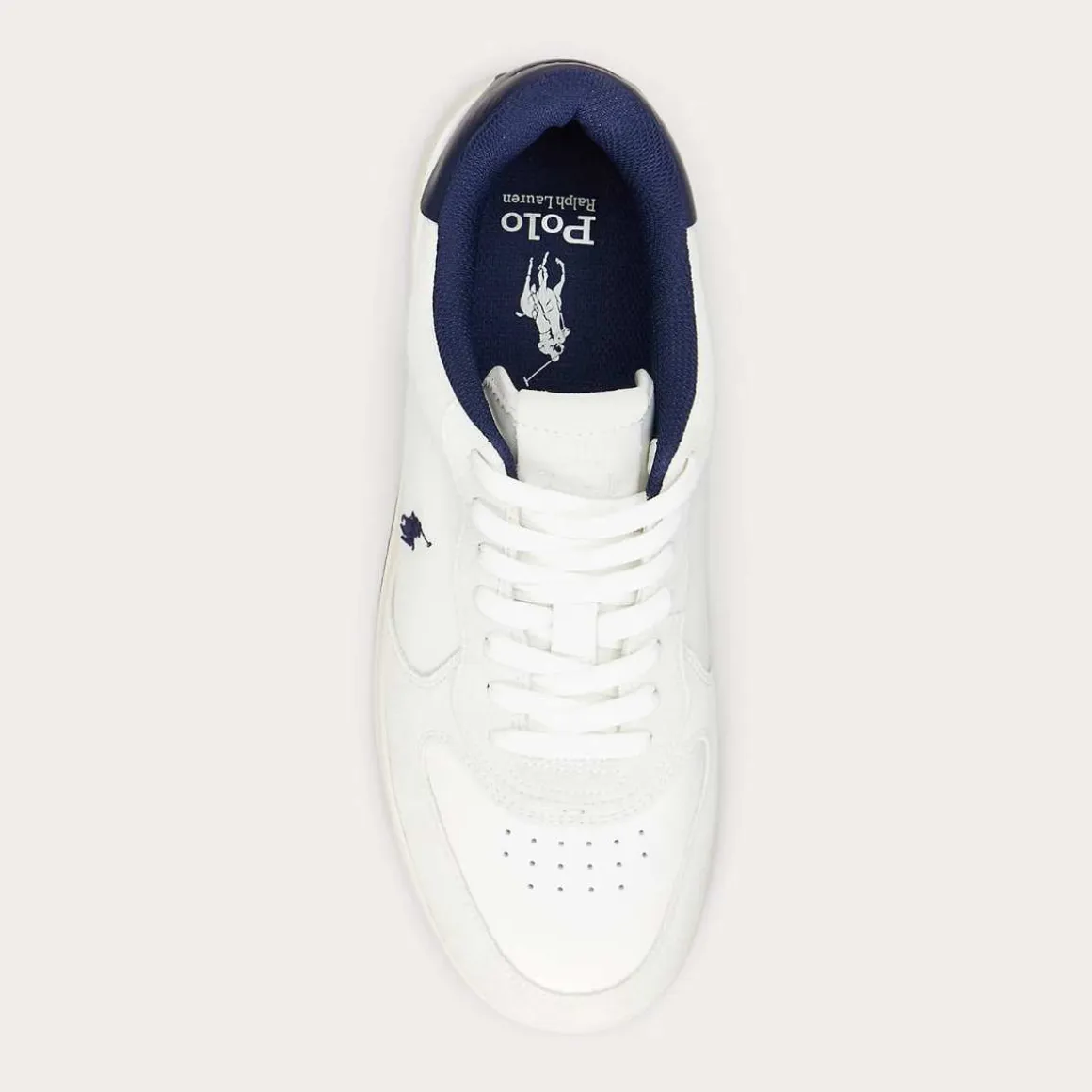 - Signaturponni på utsiden. «Polo Ralph Lauren»-preget skinnlapp på pløsen. «Polo» preget på hælen.