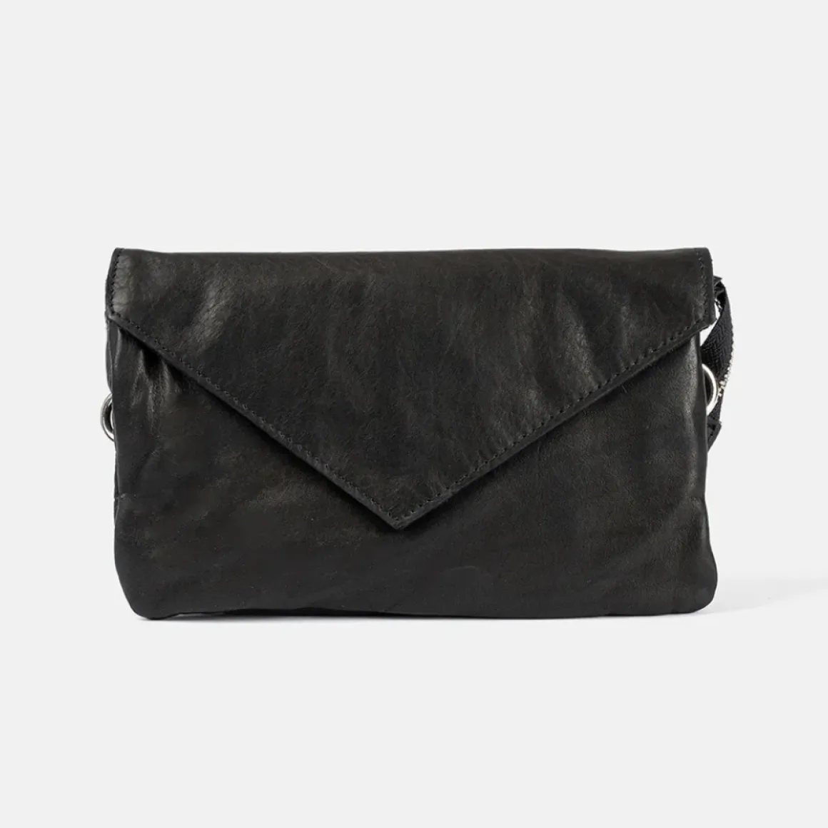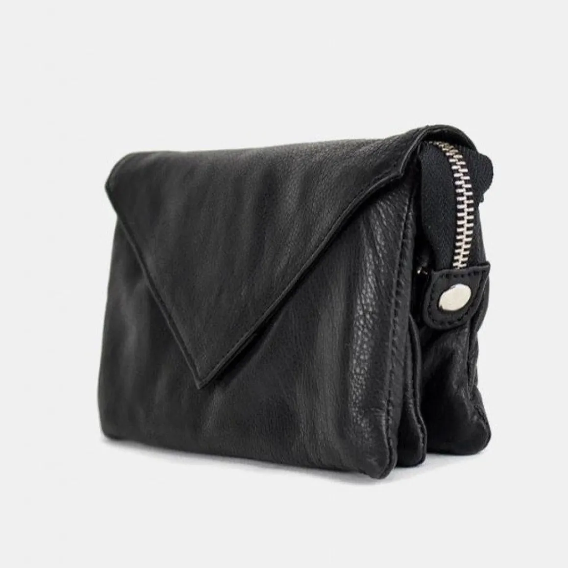 Liten clutch fra Dixie. Vesken lukkes med glidelås og klaff. Vesken er delt inn i et stort rom med to mindre innerlommer for enhver mobil. samt en lomme som lukkes med glidelås.