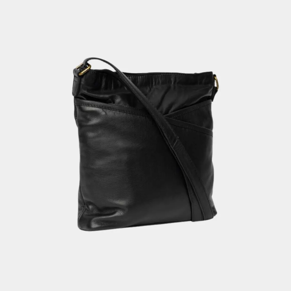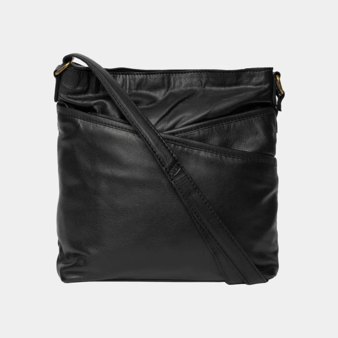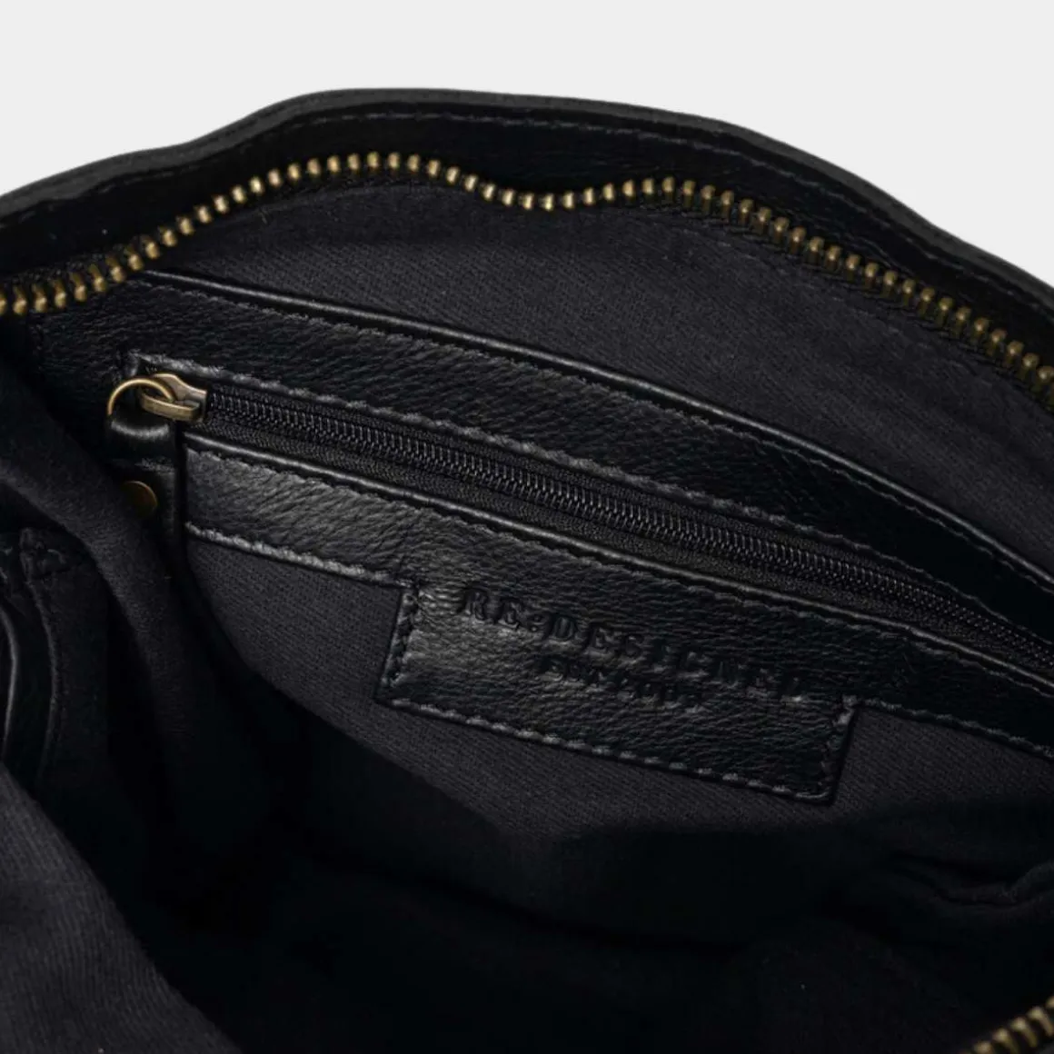 ReDesigned by Dixie Heddi Small, er en håndlaget crossover-veske laget av 100% ekte skinn, utsmykket med antikk messinghardware. Vesken har glidelåslukking, et stort hovedrom med en intern glidelåslomme, og to frontrom i forskjellige størrelser for praktisk oppbevaring.
