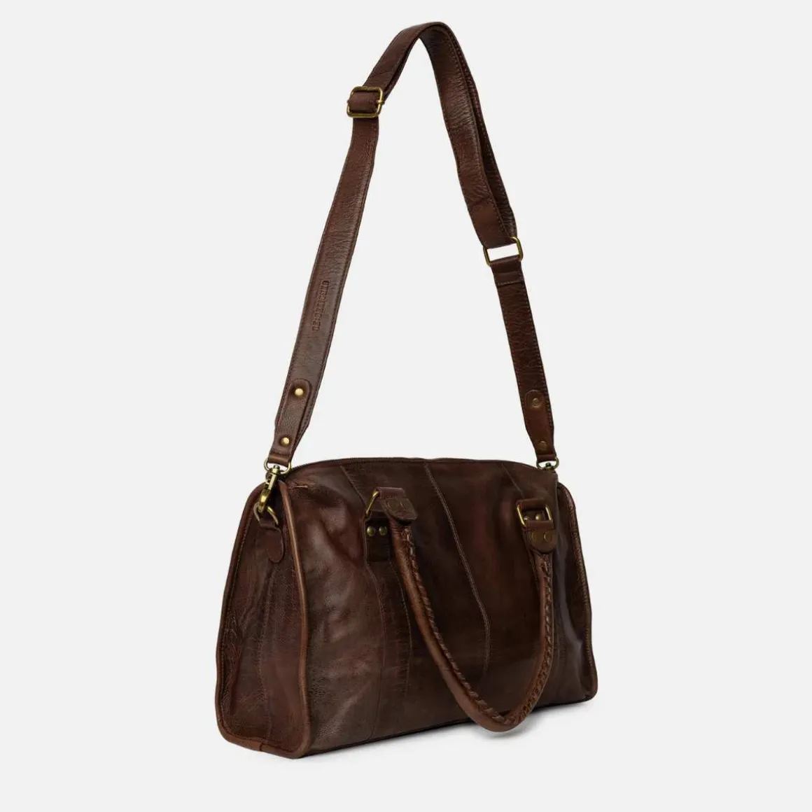 Miri Big fra Redesigned by Dixie er en stilig og elegant skulderveske, designet med et tidløst og klassisk uttrykk. Vesken har to solide bærehåndtak som gjør den perfekt å bære på skulderen – den leveres også med en justerbar crossbody-reim. På forsiden er vesken fremhevet med to vertikale sømmer og detaljer i messingfarget metall, inkludert spenner og nagler, som gir et vintagepreg. Romslig og slitesterk – denne håndvesken er ideell til hverdagsbruk eller som et stilfullt tilbehør til en smart, avslappet antrekk.