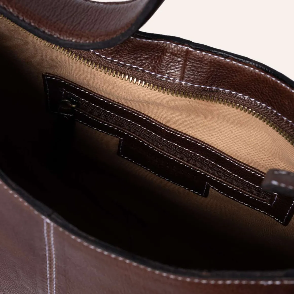 Vesken er laget i Dixie sitt eksklusive Urban Leather Quality, et mykt kuskinn som farges før overflaten ferdigstilles. Prosessen bevarer lærets naturlige struktur og gir hver veske et unikt og autentisk uttrykk. Et lett vokslag påføres til slutt for en glatt og myk finish.