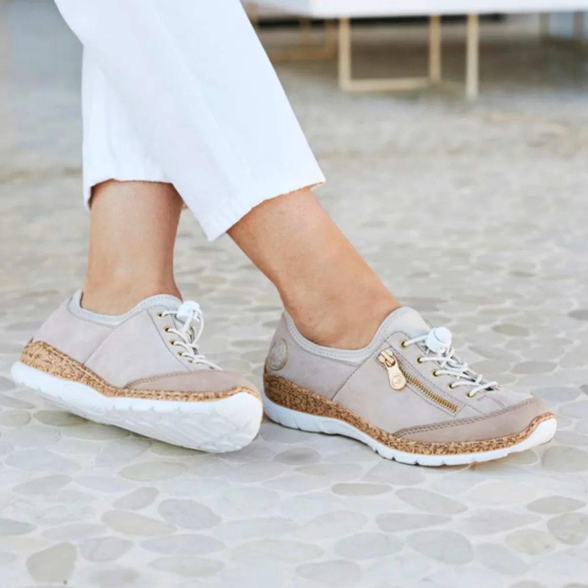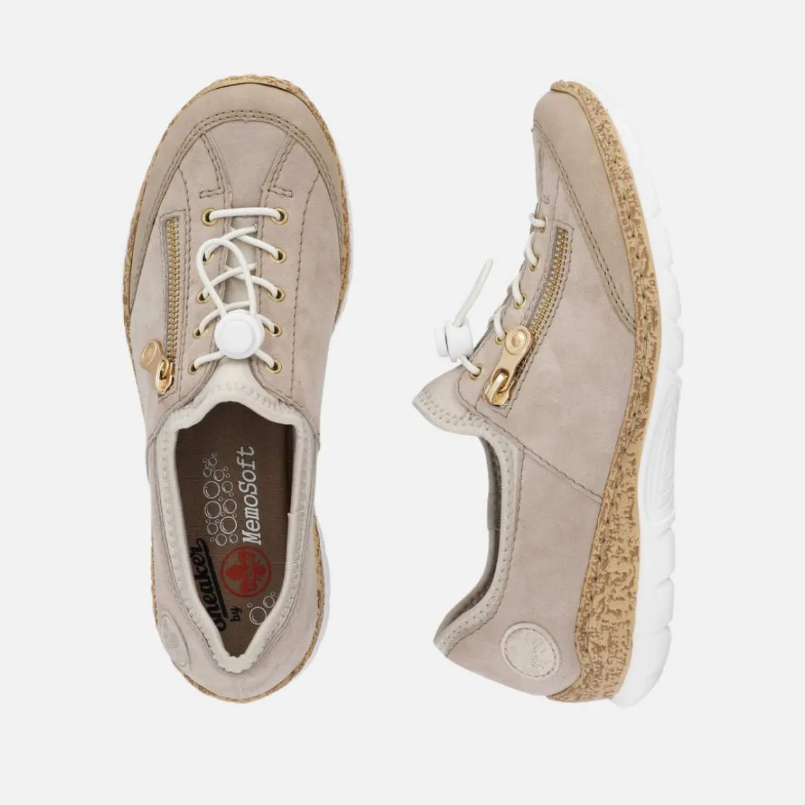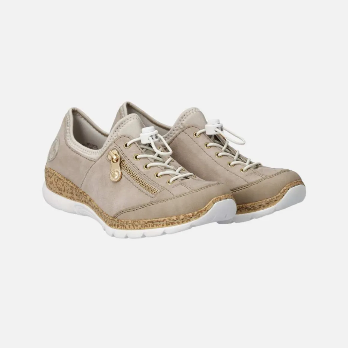 Rieker damesko for kvinner i beige. Her får du en ettertraktet klassiker fra Rieker for kvinner, utstyrt med elastiske snørebånd som gjør det raskt og enkelt å tilpasse joggeskoene til foten og en overdel i skinn. I tillegg har skoen elastiske sider som gjør den rask og enkel å ta av og på. Det myke innlegget øker komforten for føttene dine. På toppen av dette får du en ekstremt lett joggesko, slik at du knapt merker at du har den på deg.