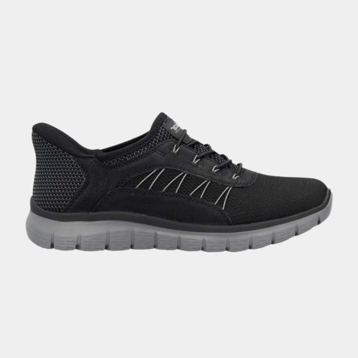 Disse asfalt-svarte Rieker-slippersene for menn imponerer med sitt moderne design og høye komfort. Den elastiske snøringen gjør det enkelt å ta dem på og av. Den fleksible og ultralette sålen lover godt grep, og den ekstra myke dekksoelen gir ekstra komfort.