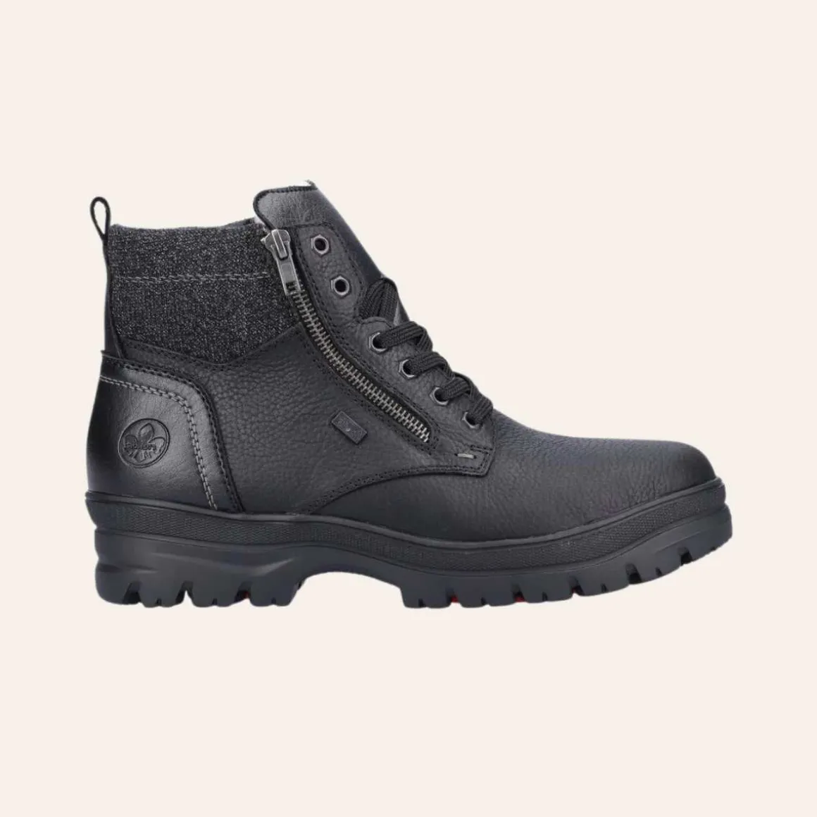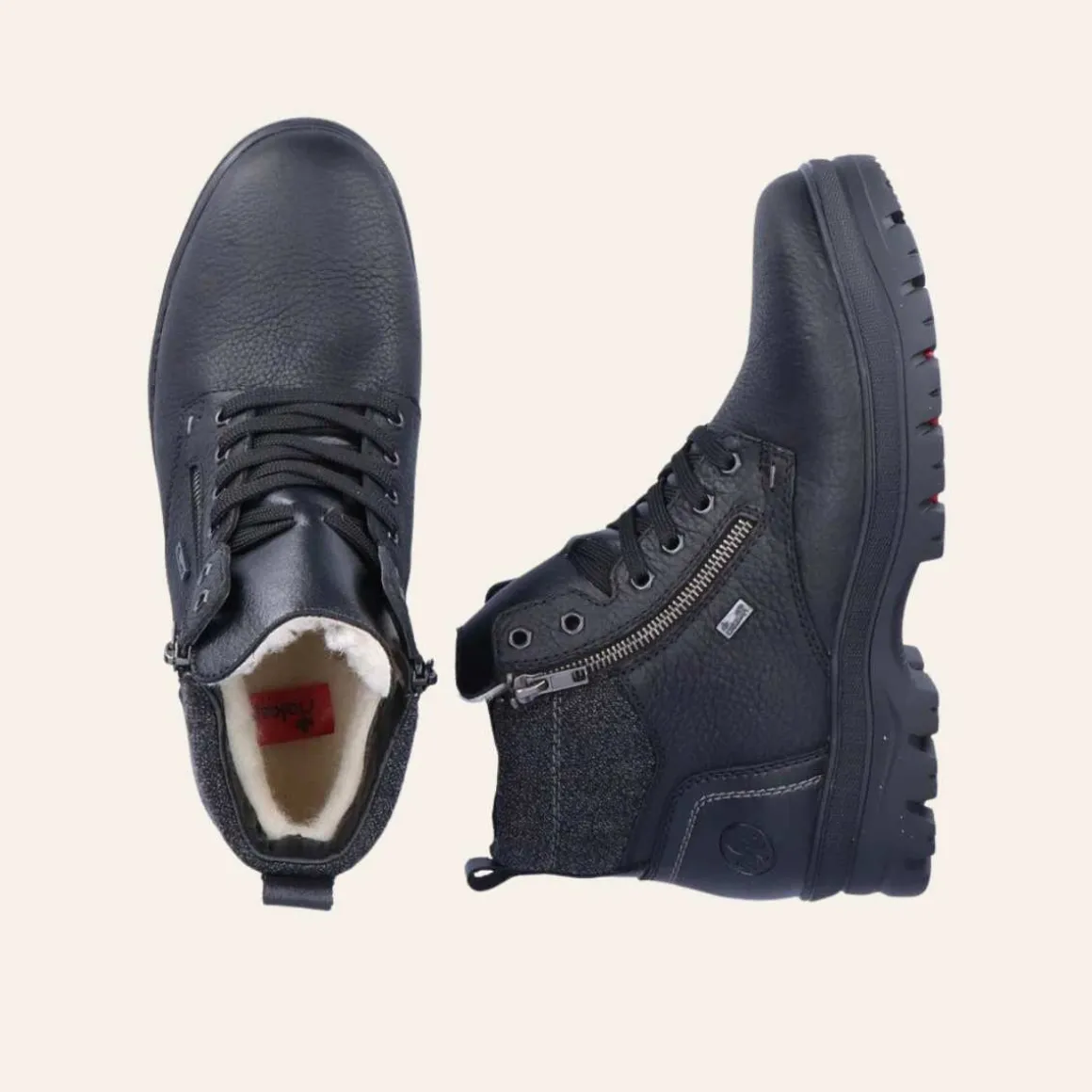 Piggsko fra Rieker med tex membran som gjør den vanntett. Foret med lammeull.
