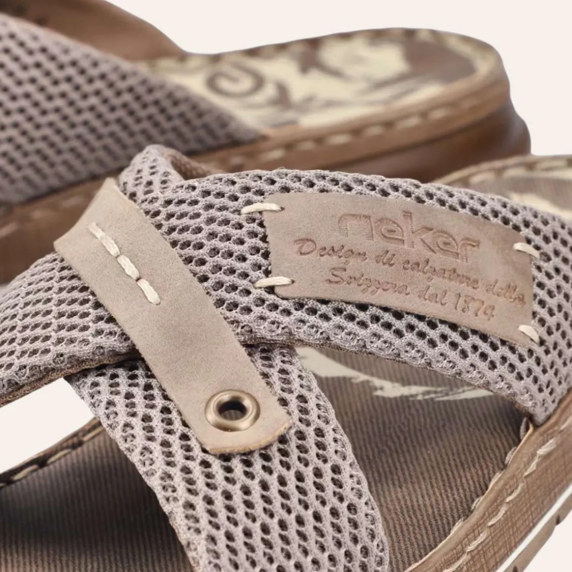 Den myke innersålen gir god komfort, mens sålen er sydd til overdelen for ekstra fleksibilitet og holdbarhet. Sandalene er også utstyrt med Rieker Antistress-teknologi, som gir lav vekt, god fleksibilitet og god støtdemping.