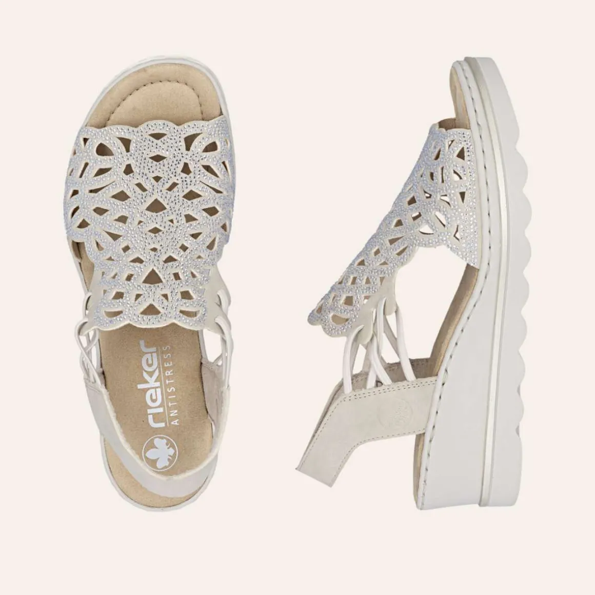Rieker kilesandal til dame – beige med glimmer