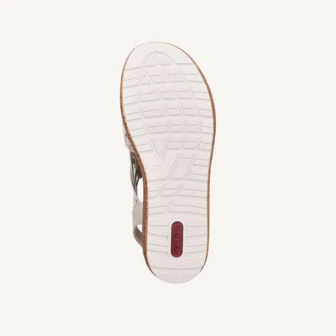 Elegant og moderne damesandal i en vakker beige farge, med et stilfullt sølvfarget mønster på forfoten som tilfører et eksklusivt preg. Sandalen har en bred rem med elastiske sider som går over i en hælrem, noe som gir både et smart og funksjonelt design. Elastikken sikrer en fleksibel passform og gjør sandalen enkel å ta av og på.