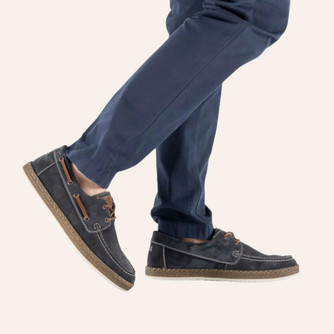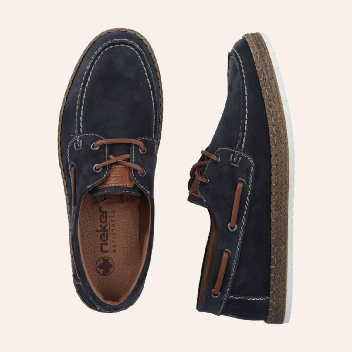 Rieker seilersko i mørkeblå semsket skinn – komfort og klassisk stil