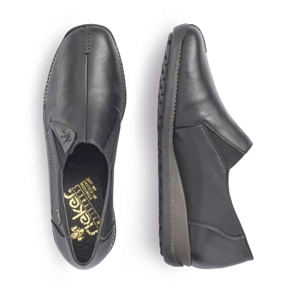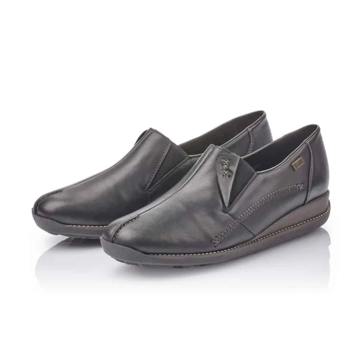 Enkel sko fra Rieker til dame med TEX som gir god vannavisenden effekt. God komfort for lange dager, og antistress såle.