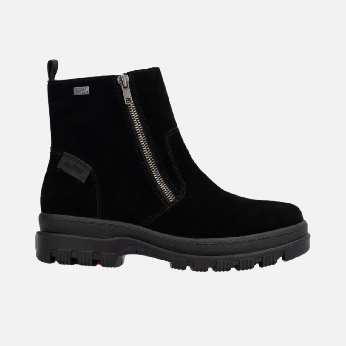 Oppdag allsidigheten med Rieker piggsko som kombinerer eleganse med praktisk funksjonalitet. Laget av mykt, ekte skinn, gir disse støvlene både stil og komfort. Den varme og myke ullfôringen holder føttene dine varme, mens den vannavvisende RiekerTex-membranen sørger for at føttene dine holder seg tørre.
