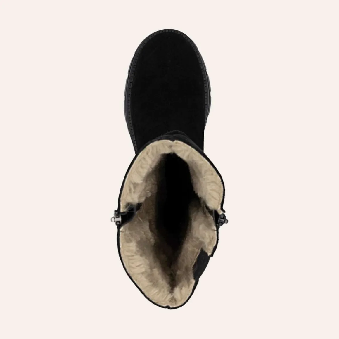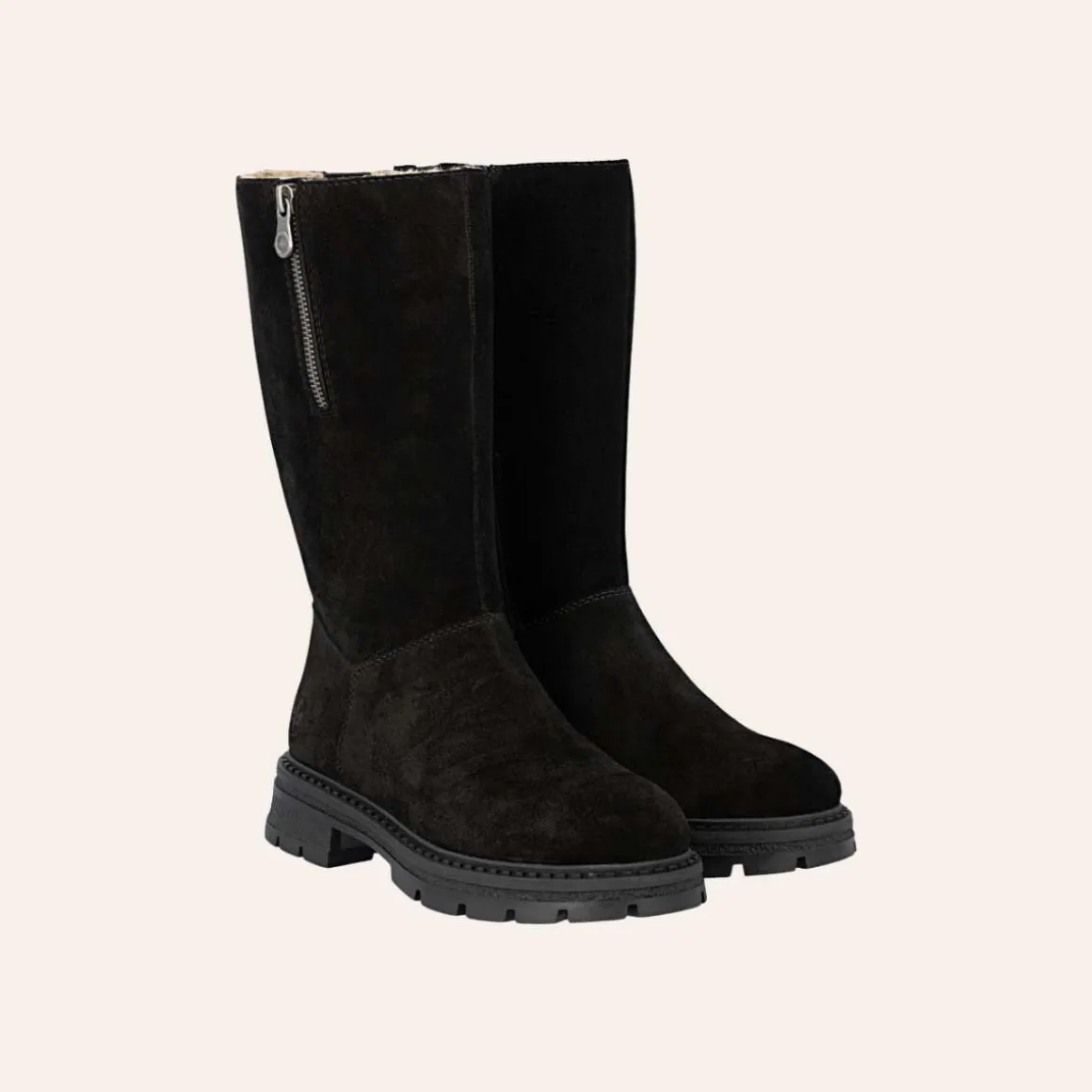 Disse klassiske støvlene i svart skinn fra Rieker med delikate sømmer gir deg både komfort og et elegant uttrykk i hverdagen. En praktisk glidelås på siden gjør det enkelt å ta støvlene av og på, mens en ekstra glidelås øverst kombinert med elastisk innfelt strikk gjør det mulig å justere vidden rundt leggen – perfekt for å sikre en individuell og behagelig passform.