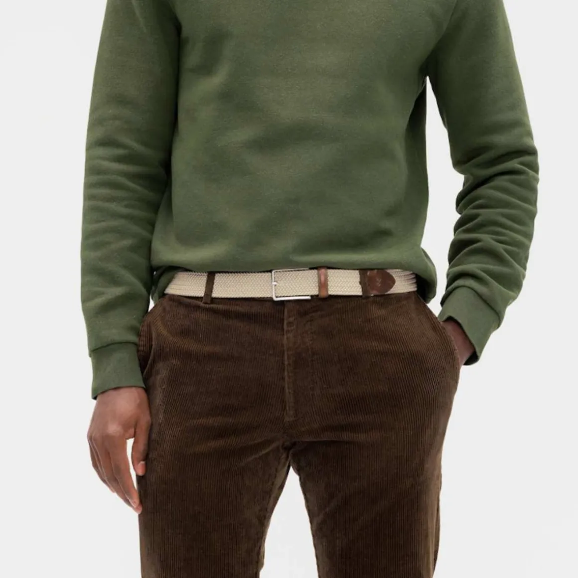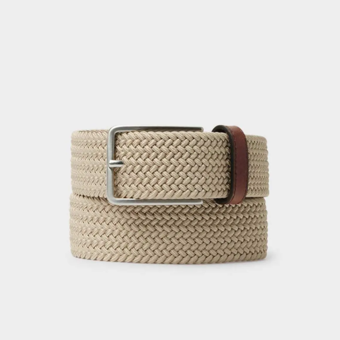 Tekstilbelte Marstrand fra Saddler. Elastisk herrebelte med detaljer i vegetabilsk garvet fullnarvet skinn, laget i Italia. Fint belte flettet i tekstil med en stilren spenne i børstet metall. Elastisiteten til beltet gjør at det er behagelig å ha på. Beltet er et stilig tilbehør til et par jeans eller chinos for en hverdagslig, men pyntet look. Spenne i børstet sølvfarget metall. Skinnet i dette produktet er av høyeste kvalitet og har blitt behandlet i et garveri som er sertifisert av Leather Working Group. Materialet i beltet er elastisk, så hvis du skal velge mellom to størrelser, anbefaler vi at du velger den minste.