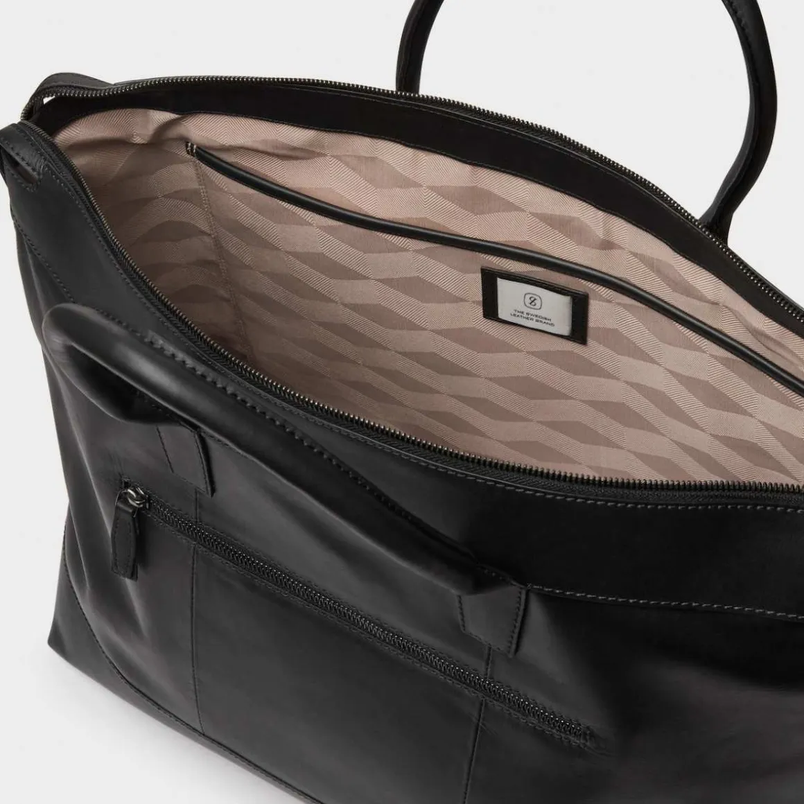 Weekendbag Hermanus fra Saddler. En ekstra stor bag, perfekt som håndbagasje. Laget av glatt og stilig fullnarvet skinn og har et minimalistisk design. Innsiden har to rom, ett åpent og ett med glidelås, samt et stort polstret rom for en datamaskin opp til 15″. Vesken kommer med en mørk sølvfarget metallglidelås. Glidelåsen åpnes hele veien rundt slik at du kan åpne vesken helt, en praktisk detalj.