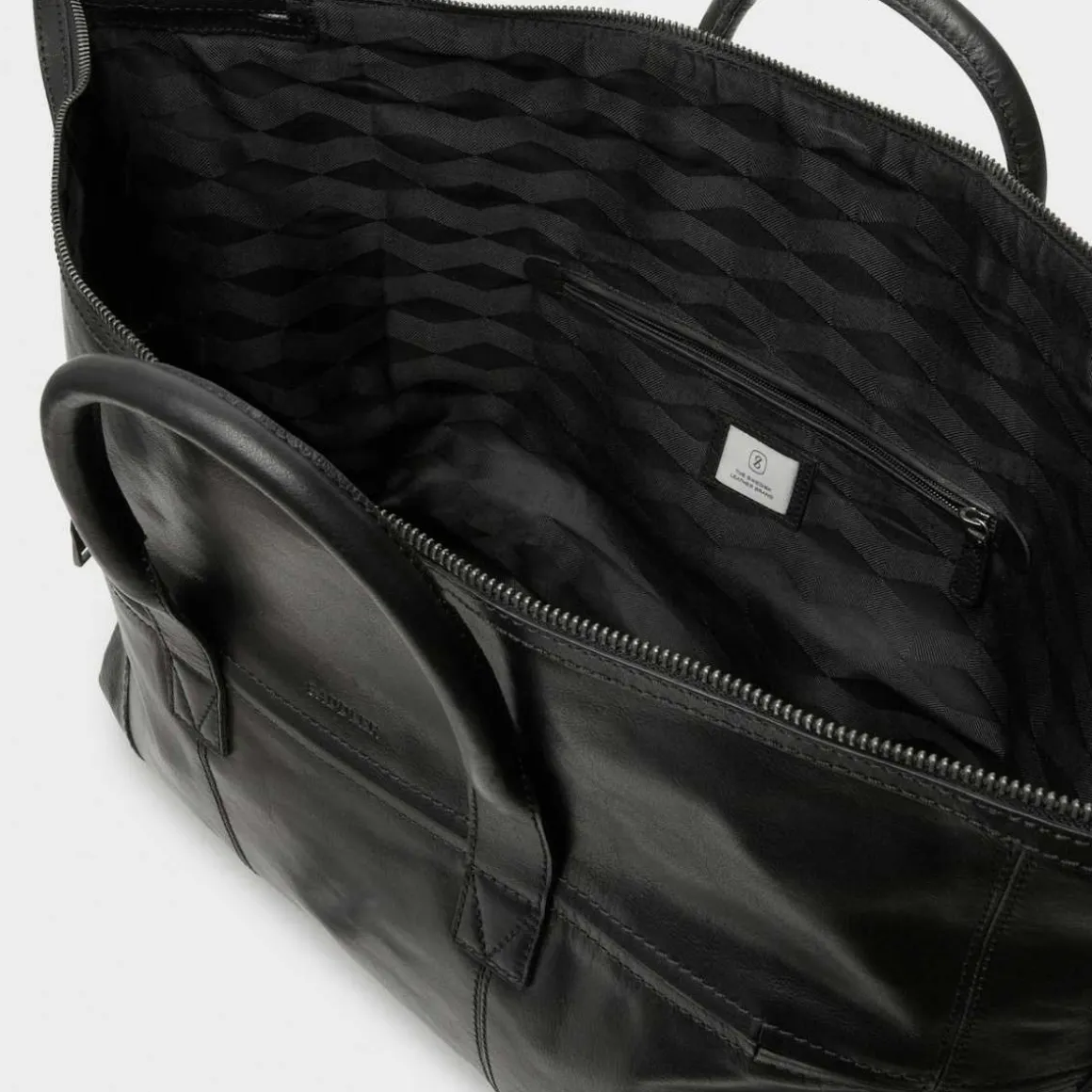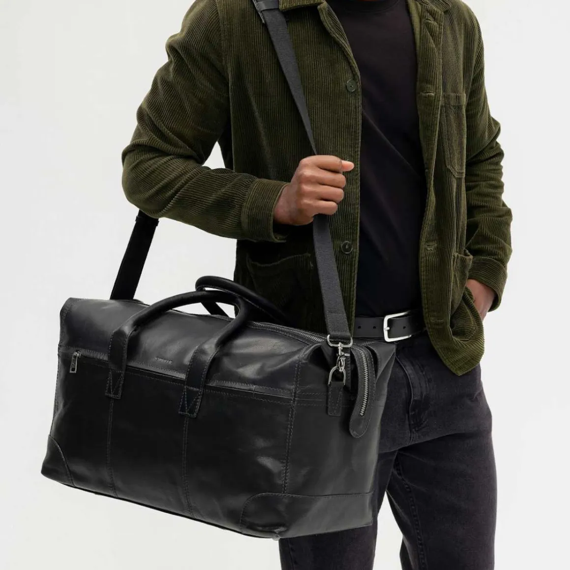 Weekendveske Metz fra Saddler. En sporty weekendbag laget av fullnarvet bøffelskinn, som har en rustikk følelse og en slitesterk overflate som bare blir bedre med tiden. Du kan åpne opp til en romslig veske med tre lommer på innsiden, hvorav den ene er en glidelåslomme.