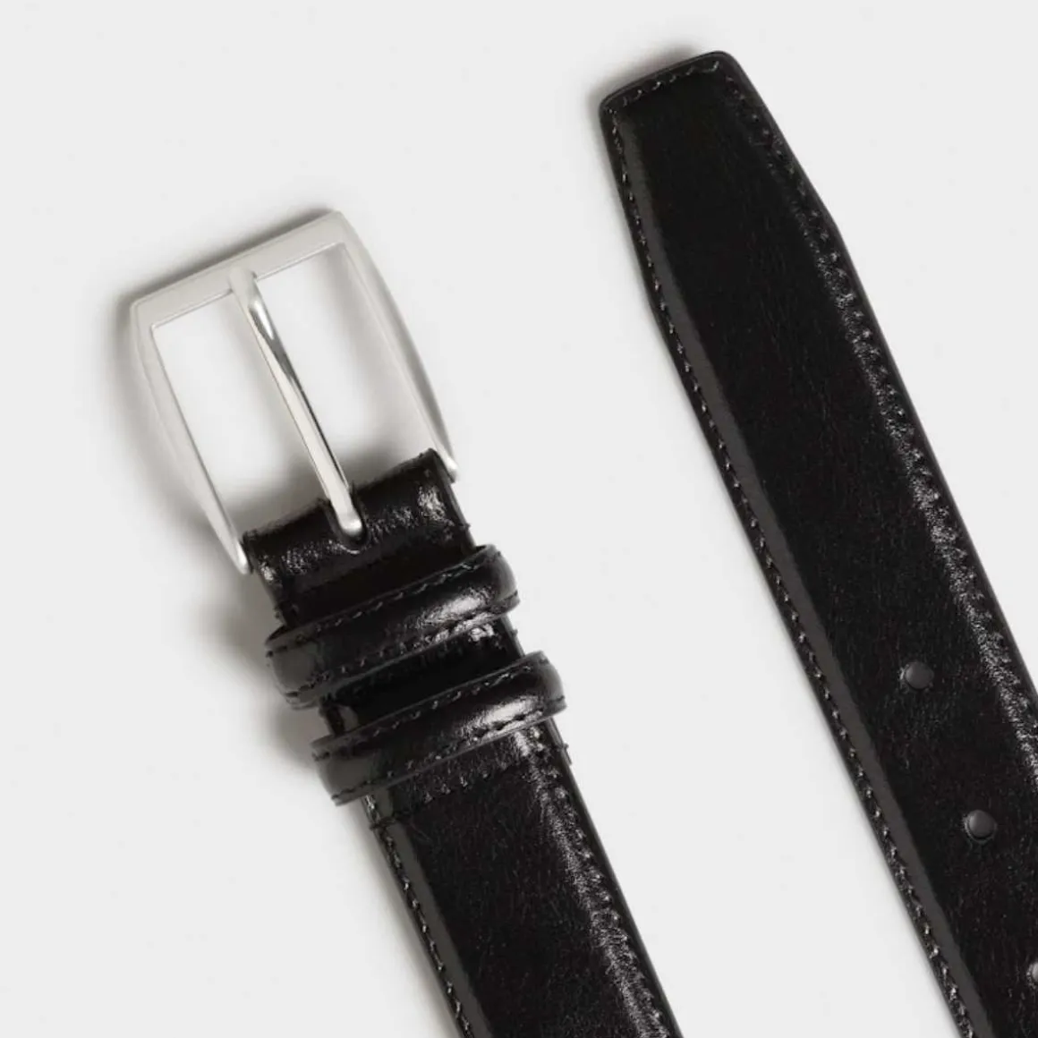 Skinnbelte Roskilde fra Saddler. Klassisk og stilrent herrebelte laget av spaltskinn, med en vakkert polert og blank finish. Et stilig belte dekorert med sømmer langs kantene og doble hemper. Fint å bruke med et par jeans eller chinos. Spenne i børstet sølvfarget metall. Skinnet i dette produktet har blitt behandlet i et garveri som er sertifisert av Leather Working Group.