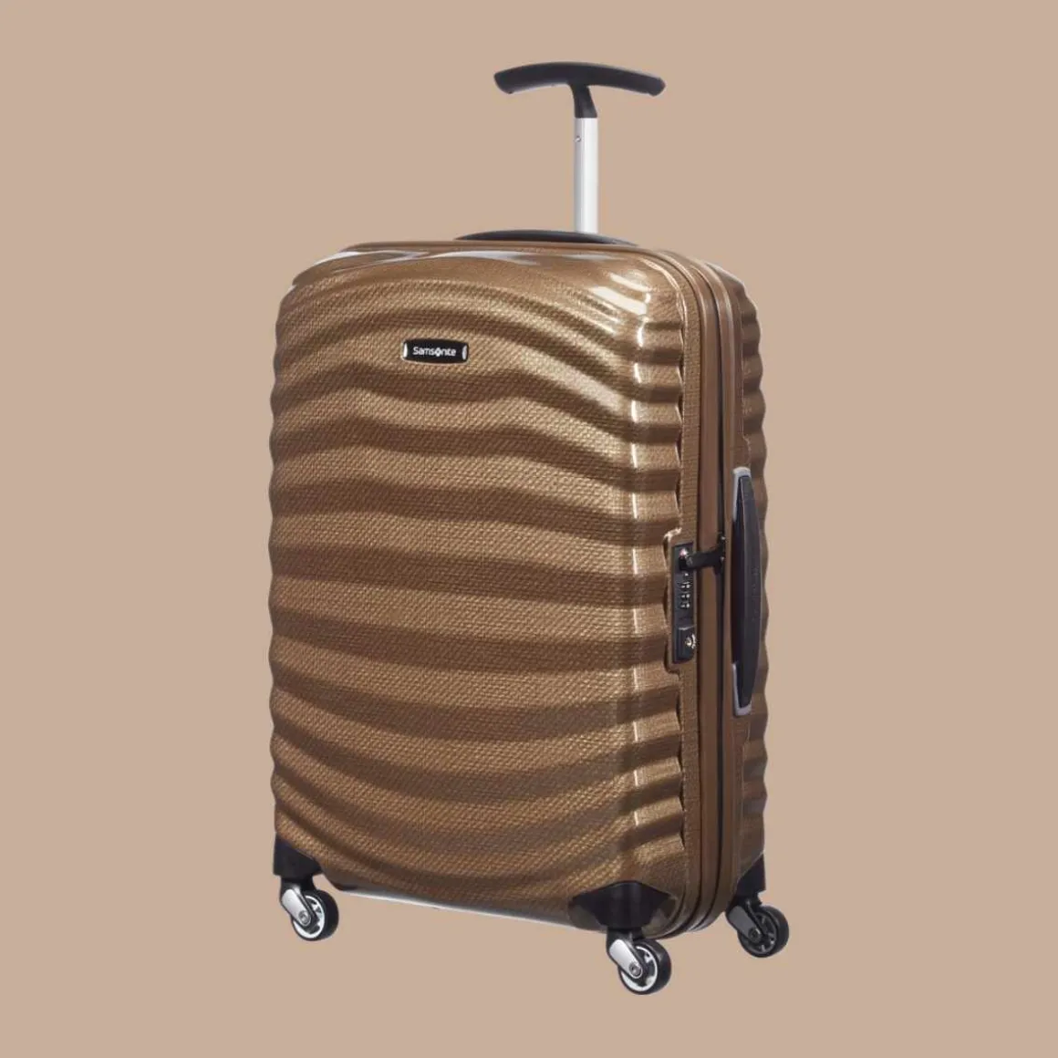 Samsonite Lite-Shock koffert. Denne harde koffertens selvforsterkede, organiske design og ultralette komfortkomponenter har gitt en ekstra lett bagasjekolleksjon som setter en ny standard. Designens støtabsorberende natur sørger for at Light-Shock er sterk selv uten et tykt utvendig skall.