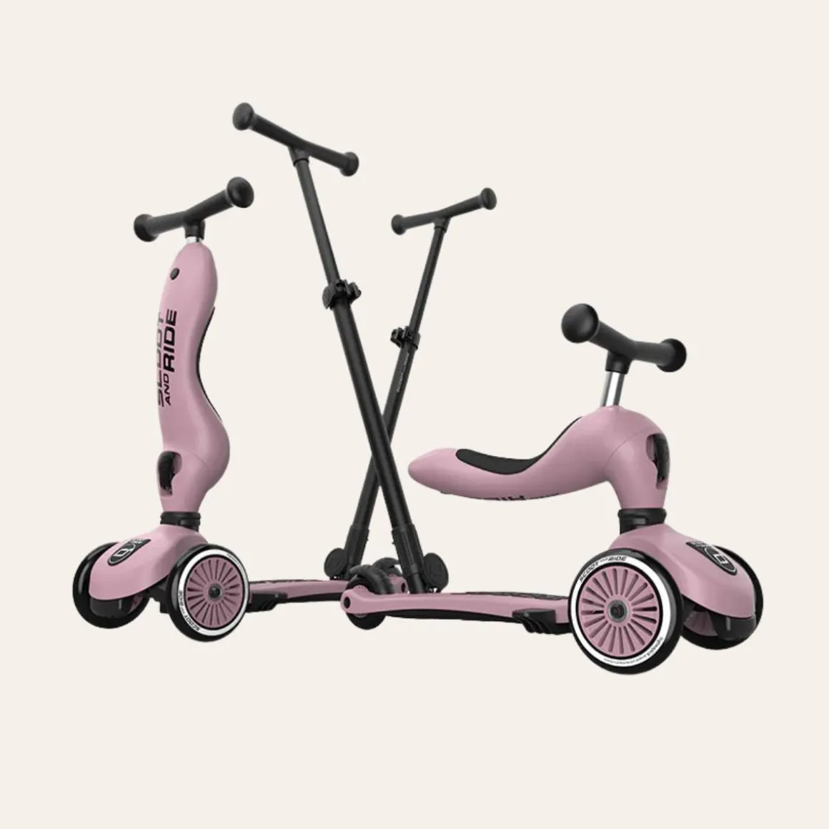 Highwaykick 1 Push and Go kombinerer alle fordelene med Highwaykick 1 med en ny, viktig funksjon: foreldre-skyvestangen. Nå er det mulig å skyve barn mellom ett og tre år komfortabelt, både sittende og stående. Den praktiske skyvestangen kan festes til fotbrettet på sparkesykkelen uten verktøy og kan justeres i tre forskjellige høyder. Fotstøtter kan også festes til fotbrettet slik at barna kan hvile føttene komfortabelt mens de blir skjøvet. Alle de velkjente funksjonene til Highwaykick 1, som 2-i-1-systemet og den høydejusterbare setet, er bevart med Push and Go. Dette betyr at denne modellen også vokser med barnet ditt.