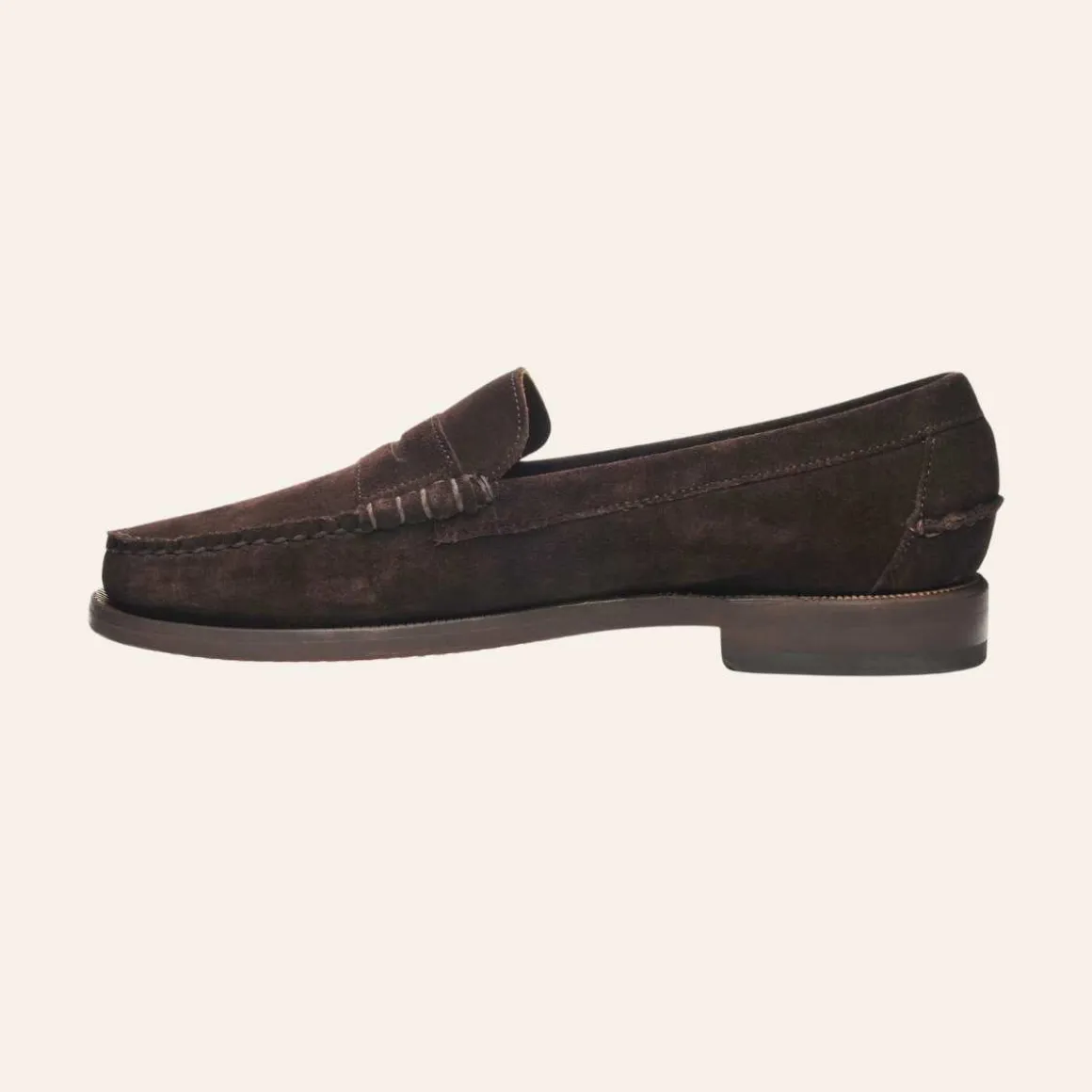 Laget av vanntett, mykt oljet semsket delt skinn og håndsydd med det fineste håndverket, er disse klassiske slip-on beefroll penny loafer-mokasinene utformet for enestående følelse og tilbyr en ekstra fleksibel og smidig opplevelse. De har ufôret overdel, innersåle i skinn og såle og hæl i naturlig lær med gummi-innlegg for bedre grep.