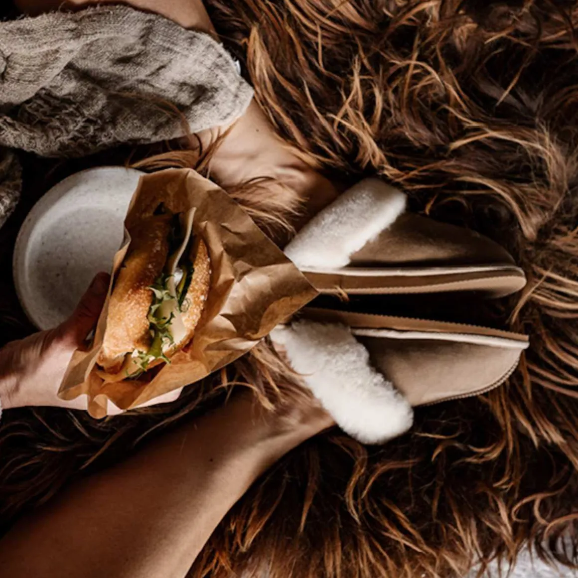 - Toppmateriale: 100% saueskinn