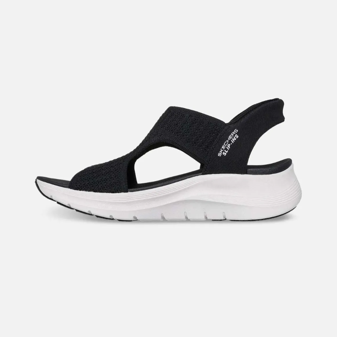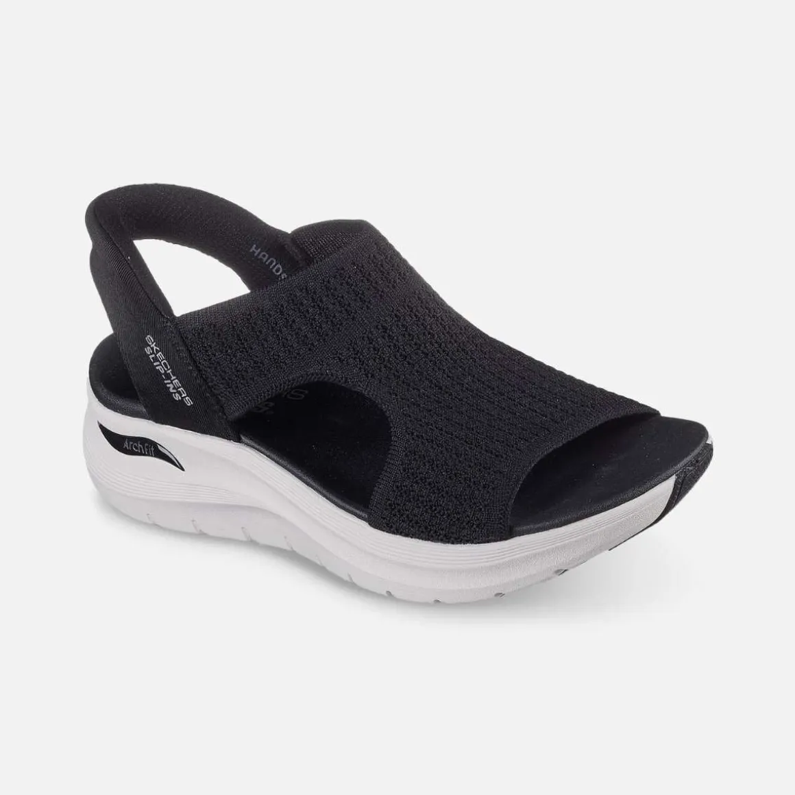Nyt solrike dager i luftig komfort med Skechers Hands Free Slip-ins: Arch Fit 2.0 – My Everyday. Designet med vår Hands-Free Skechers Slip-ins-hæl, har denne slingback-sandalen en strikket rem-overdel og en polstret Arch Fit-innersåle.