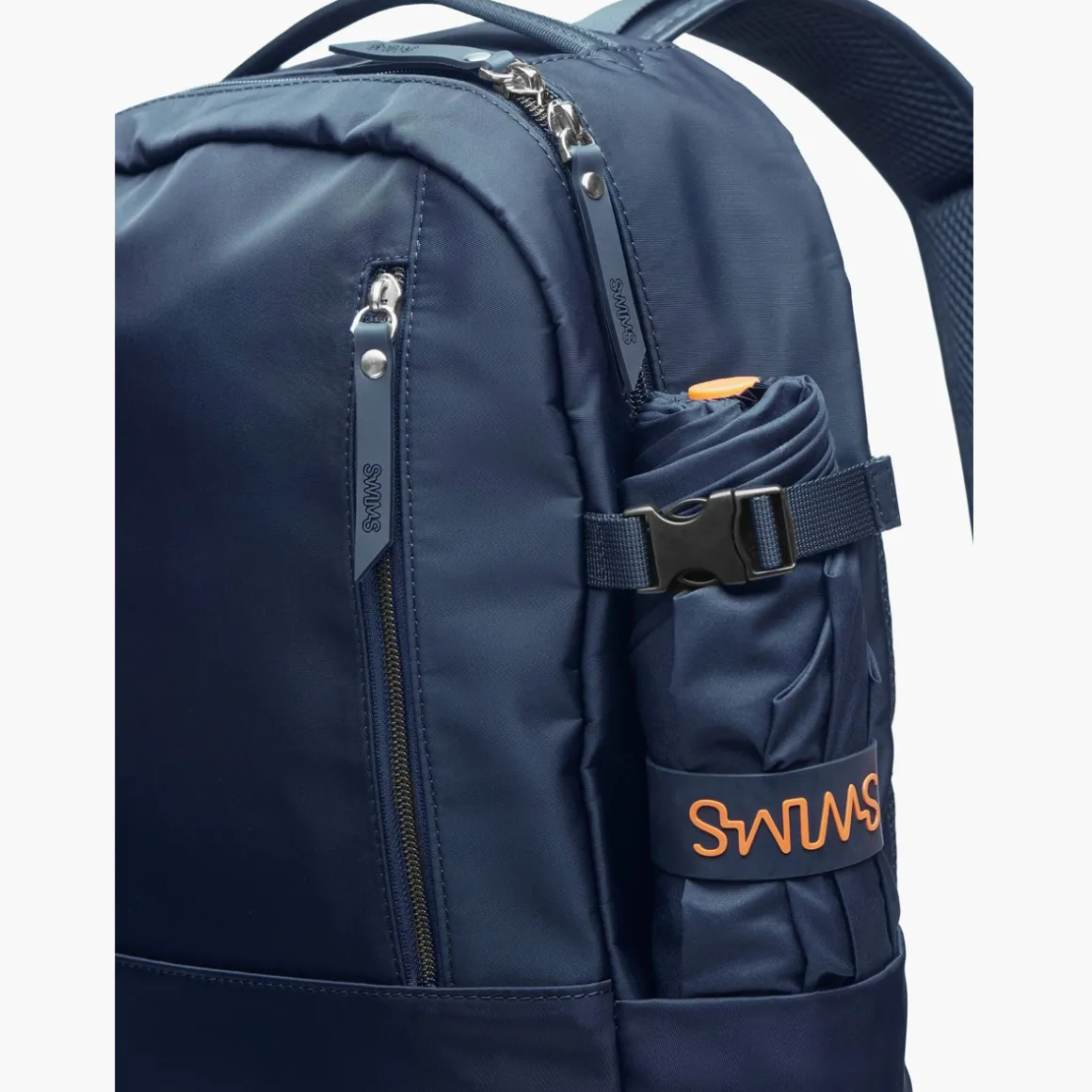 Vanntett ryggsekk fra SWIMS. Den har plass til det nødvendige på turer til og fra kontoret, treningsstudioet eller neste store ferietur. Allsidige oppbevaringsalternativer inkluderer et dedikert laptoprom pluss et praktisk hylster for en paraply eller vannflaske. Justerbare stropper og solid konstruksjon avrunder ting for komfortabel bruk på farten.
