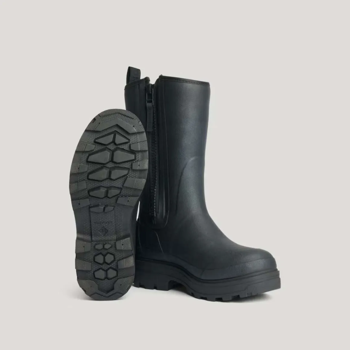 Halla Mid Winter er en robust vinterstøvel med middels høy design og varmt vinterfôr for kalde og våte dager. Støvlene har en myk neoprenisolasjon som både gir varme og er behagelig for foten. Gummistøvelen er laget for hånd av FSC®-sertifisert naturgummi og har en stabil yttersåle for å håndtere terreng. Den praktiske glidelåsen på innsiden gjør støvelen enkel å ta av og på, noe som gjør den til et komfortabelt valg for vinteraktiviteter. Den stilige designen gjør den like egnet i urbane miljøer som i naturen.