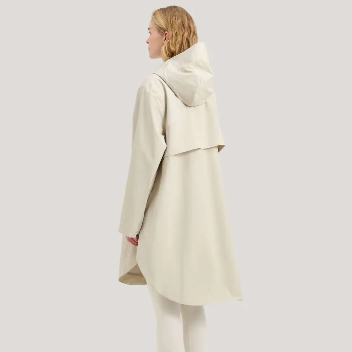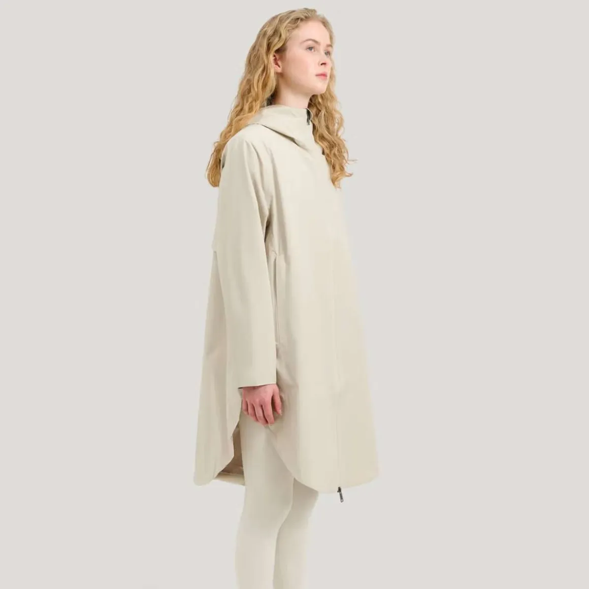 Way Poncho Parka fra Tretorn er en vanntett regnparka for kvinner, designet som et fleksibelt skallplagg for bruk fra vår til høst. Det poncho-inspirerte snittet gir en luftig silhuett med et rent uttrykk, mens konstruksjonen beskytter mot regn og vind. Parkaen er laget av resirkulert materiale og har et vanntett stoff med teipede sømmer og en vindtett og pustende konstruksjon. Diskrete lommer i sidesømmene med skjulte glidelåser, sammen med en innerlomme med glidelås, gir praktisk oppbevaring uten å forstyrre formen eller passformen.