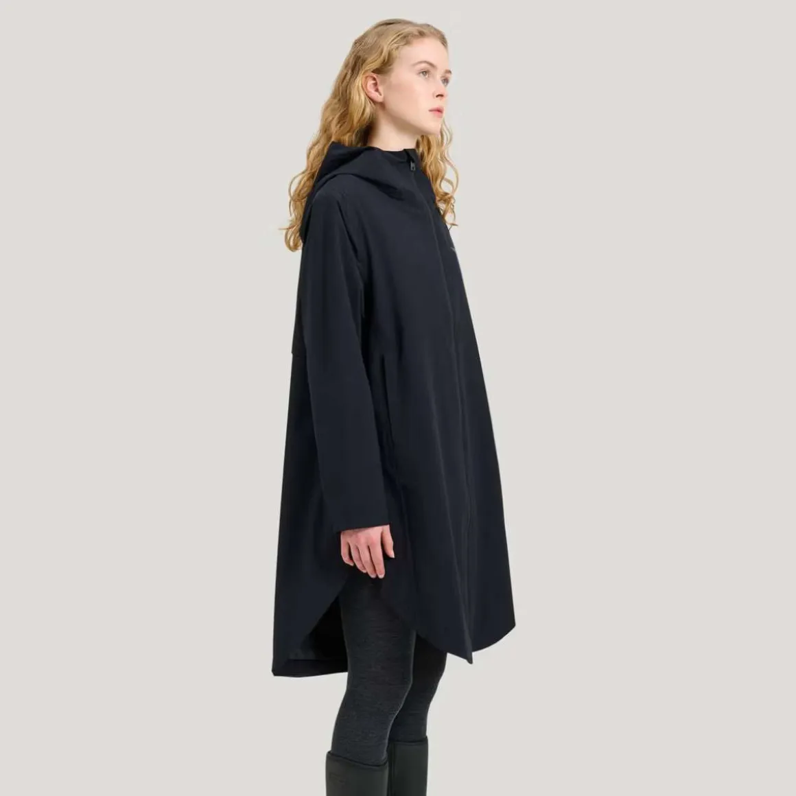 Way Poncho Parka fra Tretorn er en vanntett regnparka for kvinner, designet som et fleksibelt skallplagg for bruk fra vår til høst. Det poncho-inspirerte snittet gir en luftig silhuett med et rent uttrykk, mens konstruksjonen beskytter mot regn og vind. Parkaen er laget av resirkulert materiale og har et vanntett stoff med teipede sømmer og en vindtett og pustende konstruksjon. Diskrete lommer i sidesømmene med skjulte glidelåser, sammen med en innerlomme med glidelås, gir praktisk oppbevaring uten å forstyrre formen eller passformen.
