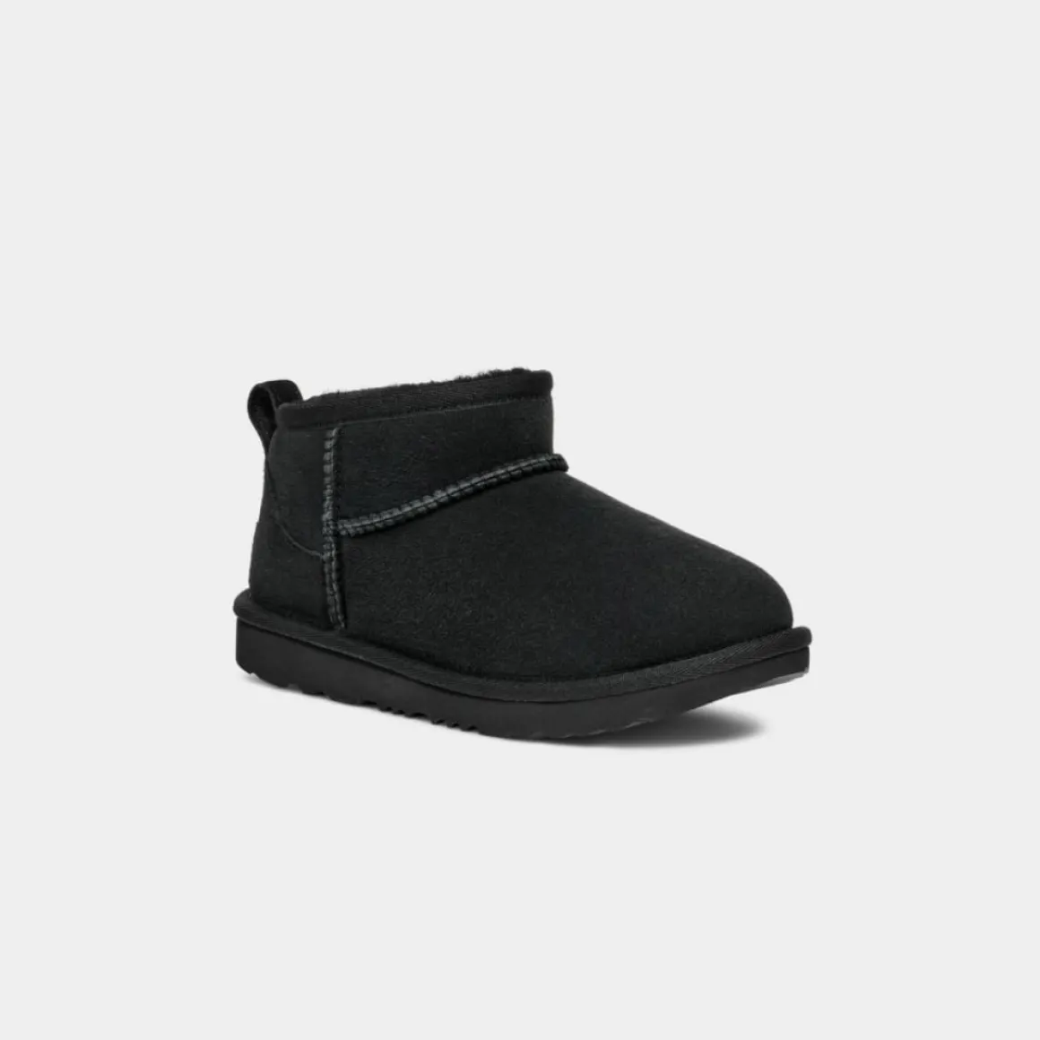 UGG sin ikoniske vintersko til barn. Classic Ultra Mini har en lavere skafthøyde for å legge til enkel av-på og forbedret allsidighet. Signaturfôr av saueskinn, en ultramyk UGGplush™-innersåle og en fleksibel, ultralett såle laget for lek hele dagen.